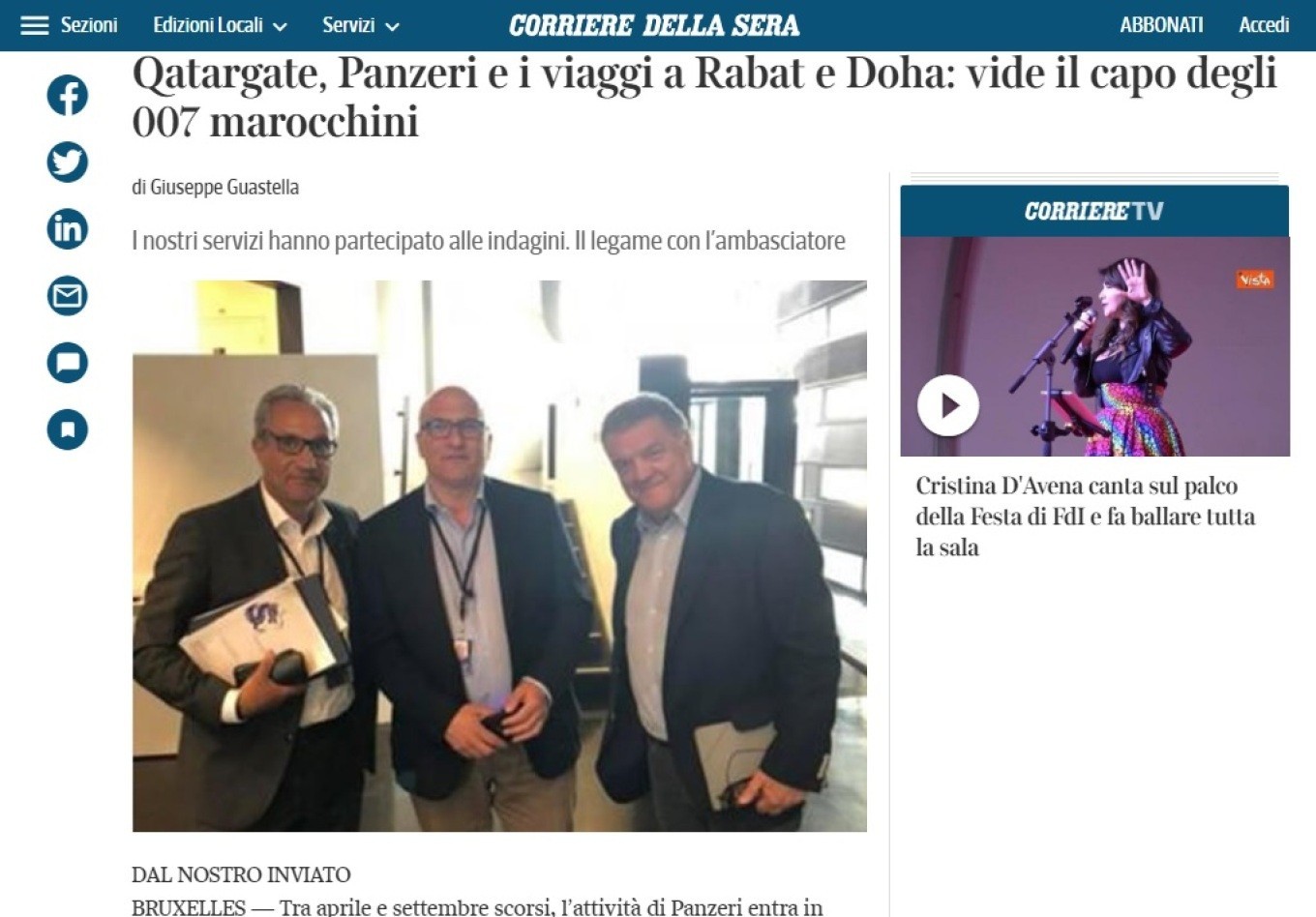 Σύμφωνα με δημοσίευμα της Corriere della Serra στο μικροσκόπιο ιταλικών και βελγικών αρχών έχουν μπει δύο ταξίδια του Παντζέρι στο διάστημα Απριλίου-Σεπτεμβρίου τόσο στο Ραμπάτ όσο και στη Ντόχα.