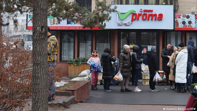 Όπως παρατηρεί ο παντοπώλης Ασκάρ Τζερμέκοφ, τις τελευταίες μέρες ο κόσμος αγοράζει κυρίως ψωμί και ζυμαρικά. «Πριν ανοίξω το δικό μου κατάστημα, θα περιμένω κι εγώ στην ουρά στον φούρνο για να πάρω ψωμί», λέει ο Ασκάρ Τζερμέκοφ. «Αν τα καταφέρω, παίρνω ακόμα και 50 καρβέλια. Εγώ συνήθως ανοίγω στις εννιά και ήδη κατά τις δέκα δεν έχει μείνει τίποτα, ούτε γάλα και ζυμαρικά. Οι αρτοποιοί μπορεί να εργάζονται κανονικά, αλλά οι οδηγοί φοβούνται και δεν μεταφέρουν το ψωμί στα καταστήματα».