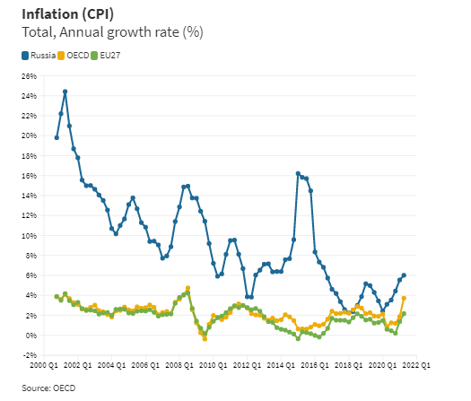 Το CNBC συγκέντρωσε οικονομικά στοιχεία από τον ΟΟΣΑ για μια περίοδο δύο δεκαετιών που αφορούν τους ρυθμούς ανάπτυξης, το κατά κεφαλήν εισόδημα, την απασχόληση και τον πληθωρισμό, ενώ συγκρίνουν το διαθέσιμο εισόδημα των Ρώσων με εκείνο χωρών μελών της Ε.Ε. και του ΟΟΣΑ.