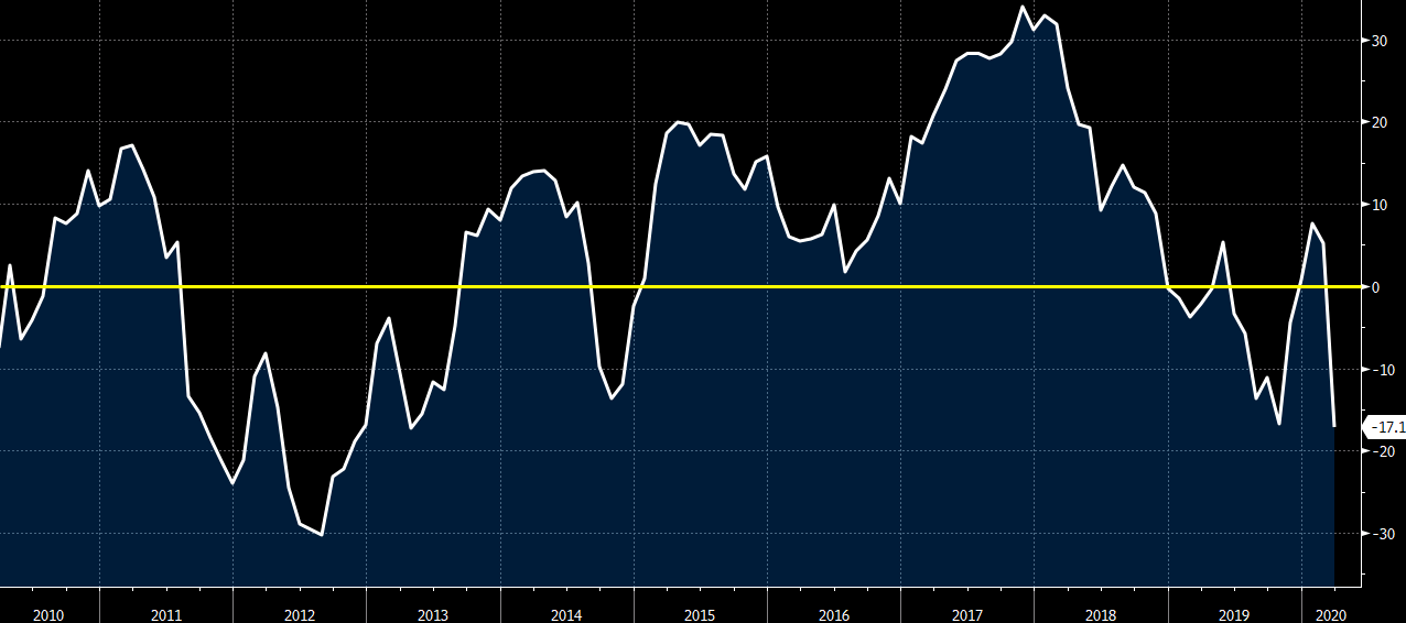 Ο δείκτης Sentix σημείωσε πτώση στο –17,1 τον Μάρτιο, από +5,2% τον Φεβρουάριο. Οικονομολόγοι του ειδησεογραφικού πρακτορείου ανέμεναν μικρότερη πτώση, στο -11,1.