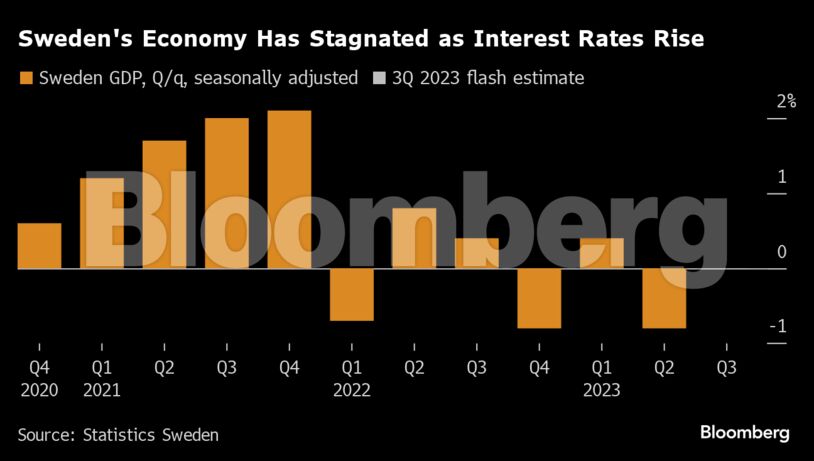 Η οικονομία της Σουηδίας παρέμεινε στάσιμη το περασμένο τρίμηνο, καθώς το αυξανόμενο κόστος δανεισμού και η αυξανόμενη ανεργία έπληξαν τις δαπάνες στη μεγαλύτερη χώρα της Σκανδιναβικής περιοχής.