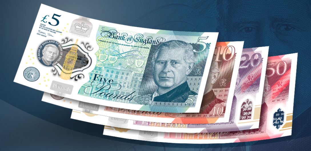 Όπως μεταδίδει το CNBC, τα νέα τραπεζογραμμάτια των 5, 10, 20 και 50 λιρών απεικονίζουν το πορτρέτο του Καρόλου στο μπροστινό μέρος, καθώς και μια φωτογραφία του σε ένα διαφανές παράθυρο ασφαλείας.