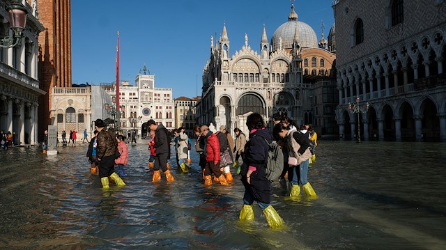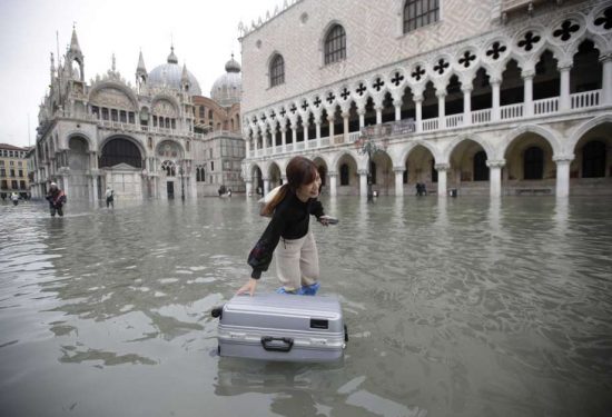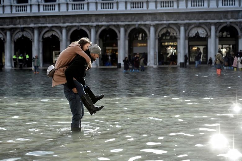 Χάρη σ’ αυτή την ανάπαυλα, η διάθεση ήταν μάλλον εύθυμη, καθώς οι τουρίστες διασκέδαζαν περιδιαβαίνοντας την τεράστια πλατεία του Αγίου Μάρκου φορώντας πορτοκαλί, μπλε ή κίτρινες γαλότσες ή πίνοντας έναν καφέ με τα πόδια μέσα στο νερό στα λίγα μπαρ ή εστιατόρια που ήταν ανοικτά.
