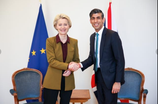 Σε κοινή δήλωσή τους την Κυριακή, ο Σουνάκ και η φον ντερ Λάιεν ανέφεραν ότι «συμφώνησαν να συνεχίσουν τις εργασίες τους αυτοπροσώπως προς την κατεύθυνση κοινών, πρακτικών λύσεων για το φάσμα των πολύπλοκων προκλήσεων γύρω από το Πρωτόκολλο για την Ιρλανδία και τη Βόρεια Ιρλανδία».