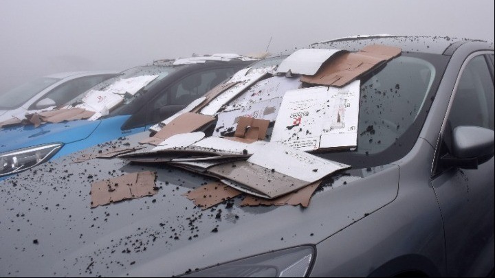 Στα πλάνα που μεταδόθηκαν από ιταλικά μέσα ενημέρωσης φαίνονται αυτοκίνητα στην Κατάνη, καλυμμένα με ένα στρώμα γκρίζας σκόνης.
