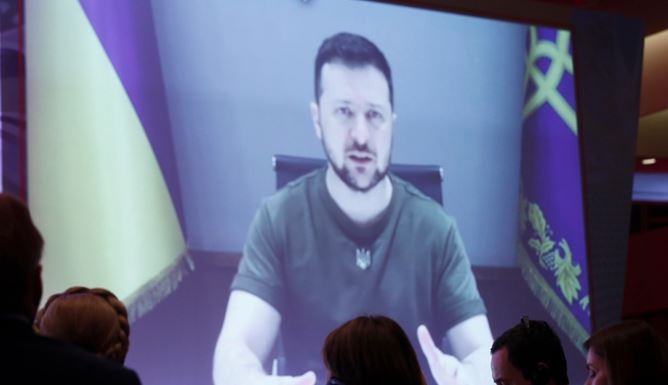 «Όλες οι κυρώσεις σε βάρος της Ρωσίας πρέπει να υιοθετηθούν 100%, χωρίς εξαιρέσεις, και να συνεχιστούν, γιατί αν δεν τη σταματήσουμε εδώ, η Ρωσία δεν θα σταματήσει στην Ουκρανία και θα συνεχίσει με αυτήν την πολιτική της», ανέφερε ο Πρόεδρος της Ουκρανίας, Βολοντίμιρ Ζελένσκι, κατά την ομιλία του, μέσω τηλεδιάσκεψης, στο συνέδριο του Economist.