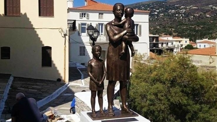 Ένα υπέροχο μπρούντζινο άγαλμα της «Γυναίκας του Ναυτικού» αποκαλύφθηκε στην Άνδρο μετά από δωρεά της Λασκαρίνας και Νένης Καρασταμάτη στη μνήμη του καπετάν Γιάννη Καρασταμάτη και της συζύγου του Ερατούς.