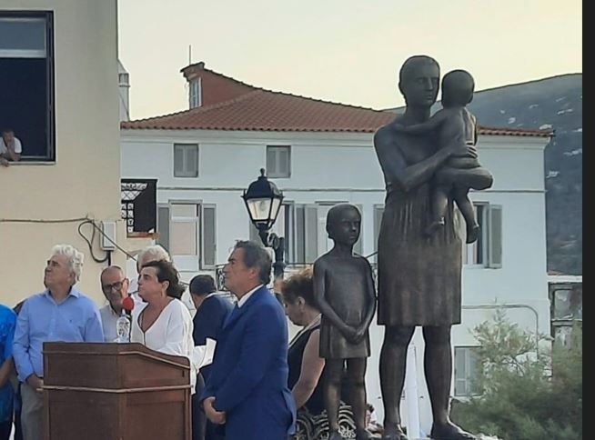 Ένα υπέροχο μπρούντζινο άγαλμα της «Γυναίκας του Ναυτικού» αποκαλύφθηκε στην Άνδρο μετά από δωρεά της Λασκαρίνας και Νένης Καρασταμάτη στη μνήμη του καπετάν Γιάννη Καρασταμάτη και της συζύγου του Ερατούς.