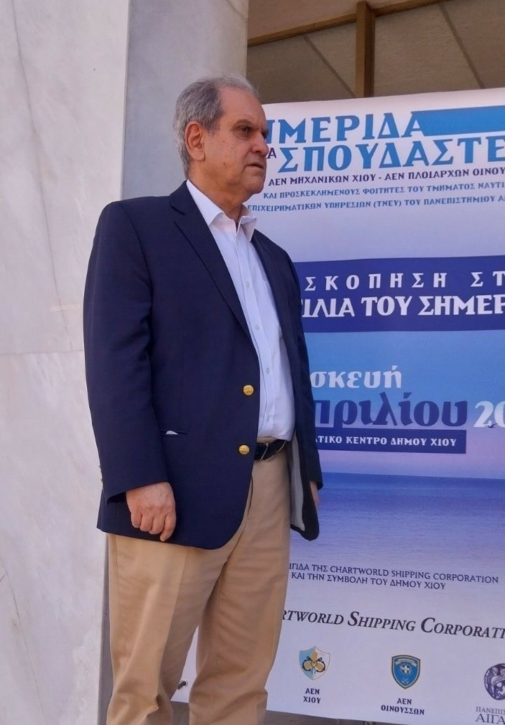 Ο Πρόεδρος του Τμήματος Ναυτιλίας και Επιχειρηματικών Υπηρεσιών, Καθηγητής Σεραφείμ Κάπρος, που χαρακτήρισε τη Χίο ως κοιτίδα της διεθνούς εμπορικής ναυτιλίας: