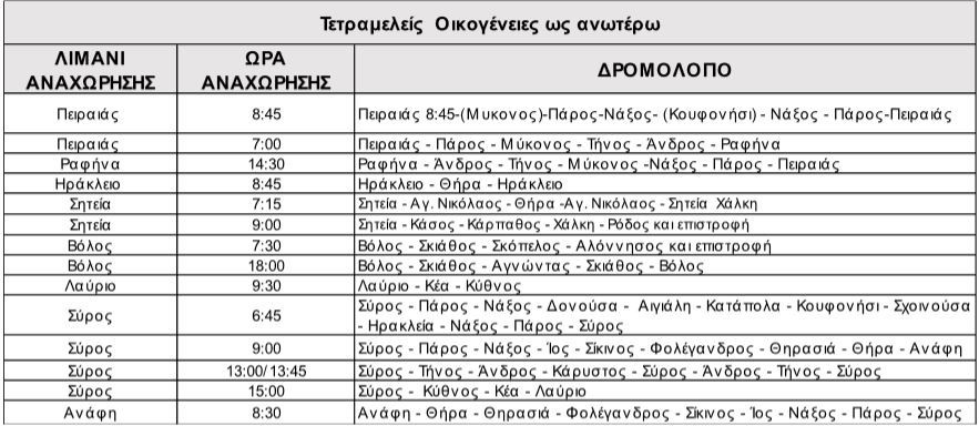20% έκπτωση στα εισιτήρια επιβάτη σε όλα τα νησιά του Αιγαίου στα δρομολόγια όπως αναφέρονται στον παρακάτω πίνακα. (Για τους μόνιμους κατοίκους Δωδεκανήσων έκπτωση 40% στη γραμμή Σητεία – Δωδεκάνησα).