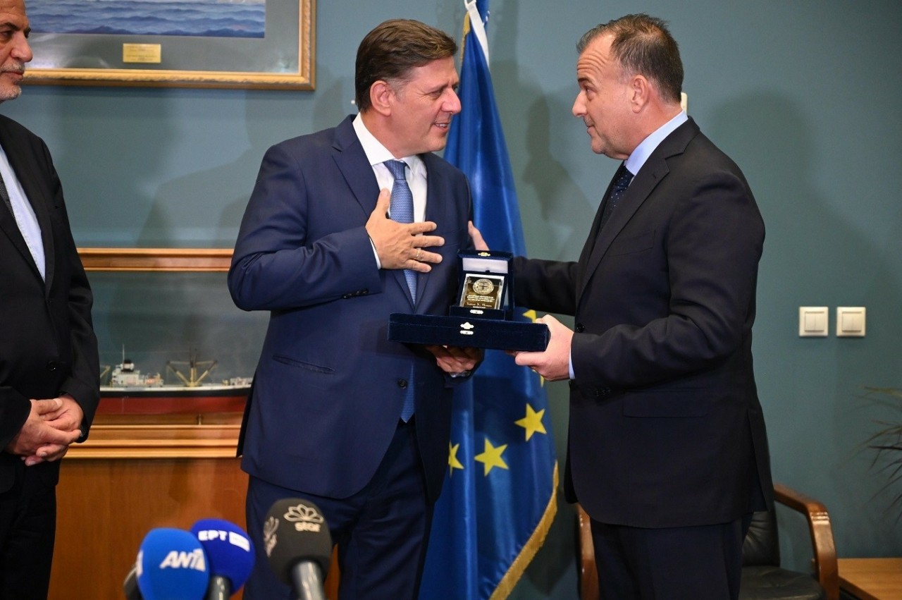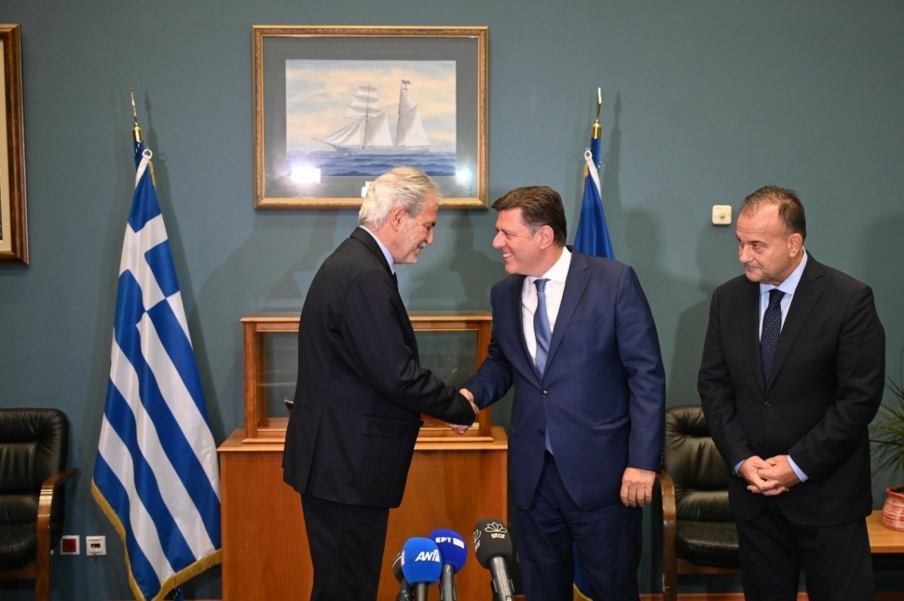 H τελετή παράδοσης – παραλαβής του Υπουργείου Ναυτιλίας και Νησιωτικής Πολιτικής πραγματοποιήθηκε το βράδυ της Τρίτης με τον νέο Υπουργό Ναυτιλίας και Νησιωτικής Πολιτικής, κ. Χρήστο Στυλιανίδη να αναλαμβάνει τα καθήκοντά του από τον απερχόμενο Υπουργό κ. Μιλτιάδη Βαρβιτσιώτη, παρουσία του Υφυπουργού Ναυτιλίας και Νησιωτικής Πολιτικής κ. Ιωάννη Παππά.