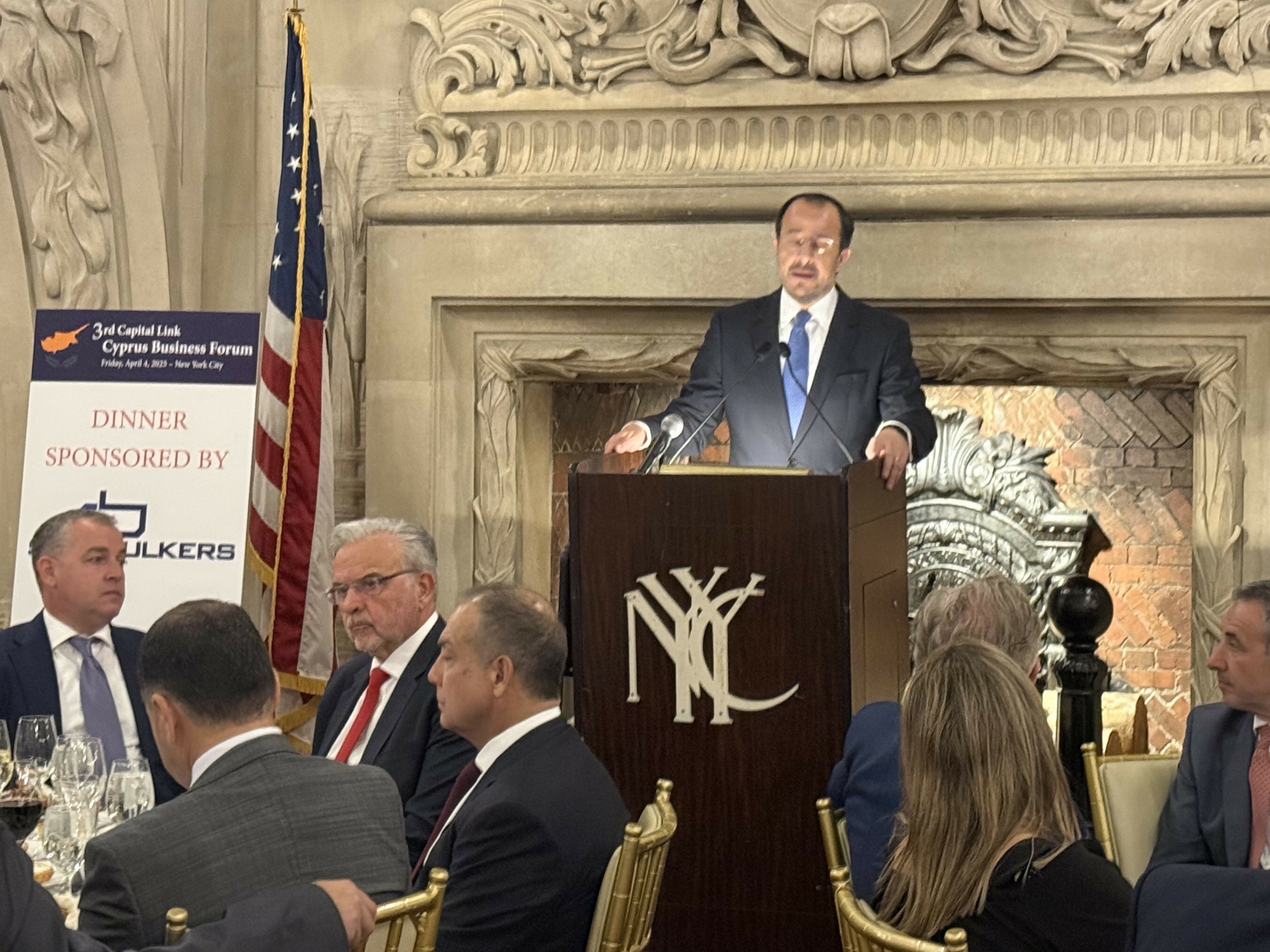 Η Κύπρος διανύει μια περίοδο ουσιαστικής μεταμόρφωσης, εδραιώνοντας τον ρόλο της ως σταθερού πυλώνα, αλλά και ως περιφερειακού ηγέτη σε ζητήματα ασφάλειας, ενέργειας και καινοτομίας στην Ανατολική Μεσόγειο. «Η γεωγραφία είναι μοίρα – αλλά το πώς πλοηγούμαστε σε αυτή τη μοίρα είναι στο χέρι μας», δήλωσε χαρακτηριστικά ο Πρόεδρος τηςa Κυπριακής Δημοκρατίας, Νίκος Χριστοδουλίδης, κατά την τοποθέτησή του σε εκδήλωση στο Yacht Club, στο πλαίσιο του 3rd Capital Link Cyprus Business Forum στη Νέα Υόρκη, παρουσία εκπροσώπων της διεθνούς ναυτιλίας, επενδυτών, εκπροσώπων της ομογένειας καθώς και του Γερουσιαστή Λάνσε Γκούντεν.