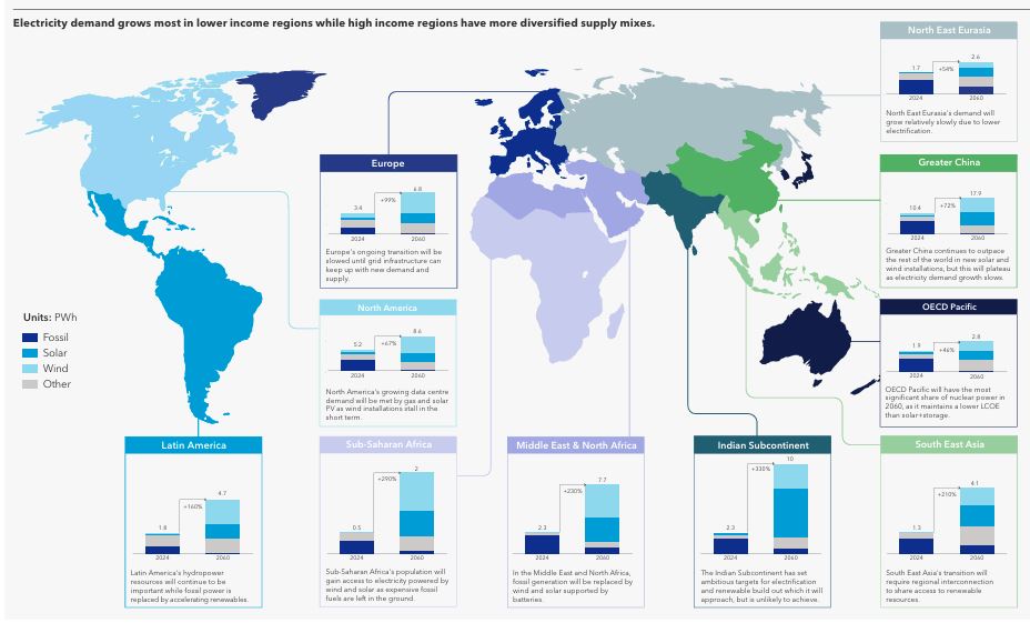- Η ηλεκτροδότηση θα έχει αυξηθεί κατά 55% μέχρι τότε, με κύριο εμπόδιο την καθυστέρηση στην ανάπτυξη δικτύων μεταφοράς ηλεκτρικής ενέργειας.