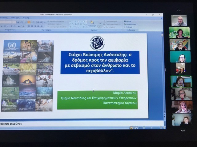 Με πρωτοβουλία της νεοσύστατης Επιτροπής Περιβάλλοντος του ICF Charter Chapter Greece, πραγματοποιήθηκε την Τρίτη 22 Μαρτίου, διαδικτυακή παρουσίαση/webinar με θέμα “Στόχοι Βιώσιμης Ανάπτυξης: ο δρόμος προς την αειφορία με σεβασμό στον άνθρωπο και το περιβάλλον“, από την καθηγήτρια Μαρία Λεκάκου, Κοσμήτορα της Σχολής Επιστημών της Διοίκησης του Πανεπιστημίου Αιγαίου.