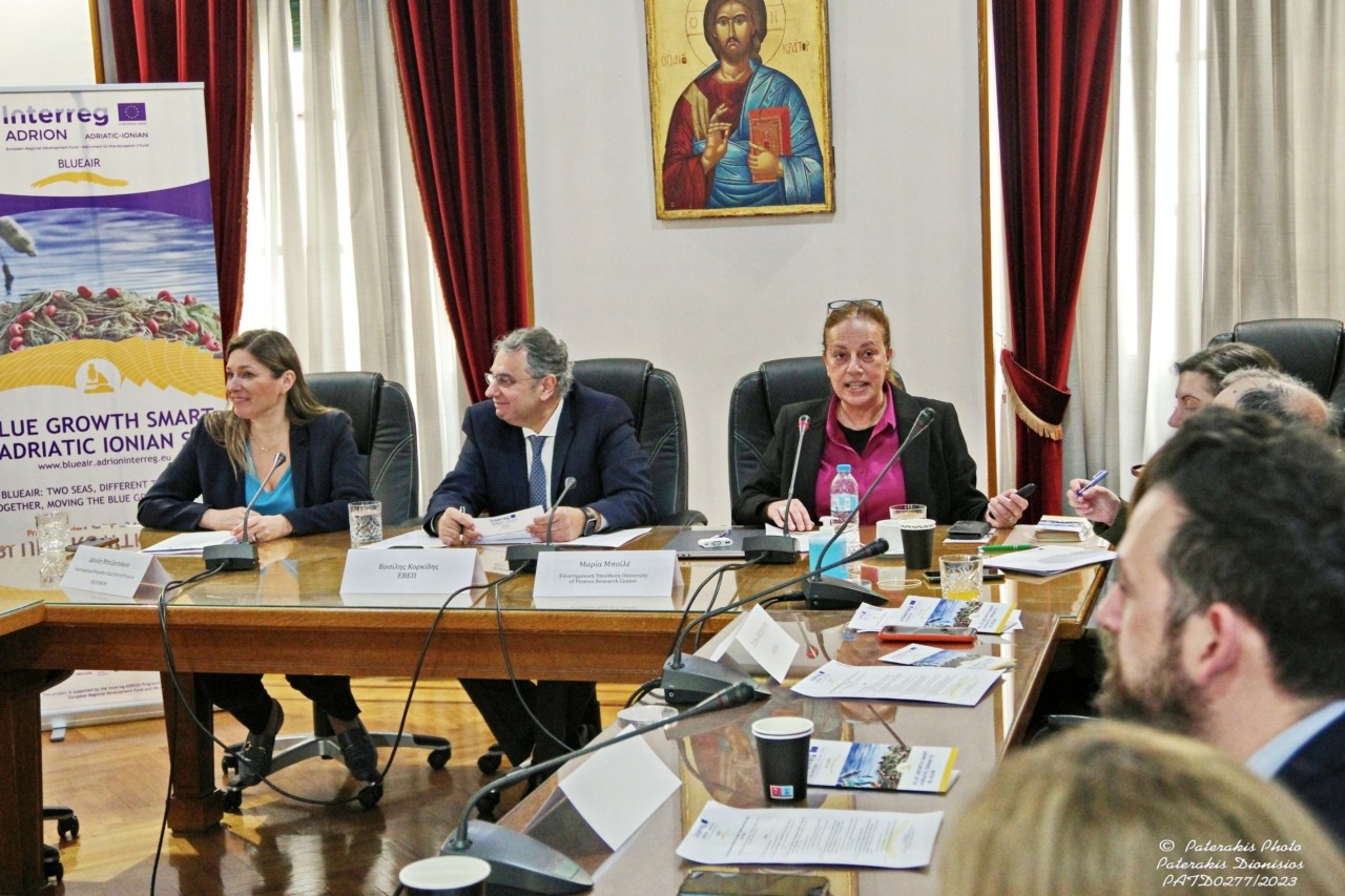 Συνεδρία με θέμα «Δικτύωση φορέων Γαλάζιας Οικονομίας – Προτάσεις και λύσεις γαλάζιας καινοτομίας» πραγματοποιήθηκε την Τετάρτη 25 Ιανουαρίου 2023, στο πλαίσιο του έργου BLUEAIR“BLUEGROWTHSMARTADRIATIC – IONIANS3” στο Εμπορικό και Βιομηχανικό Επιμελητήριο Πειραιά (ΕΒΕΠ).