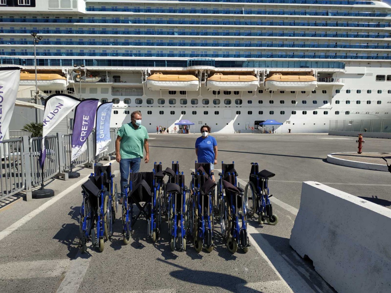 Συγκεκριμένα, από το κρουαζιερόπλοιο Costa Venezia που είχε καταπλεύσει στο λιμάνι του Ηρακλείου, δωρίστηκαν συνολικά 11 αναπηρικά αμαξίδια στον φορέα « Δικαίωμα στη Ζωή » και στον «Παγκρήτιο Σύλλογο Αναπήρων Πολιτών ».