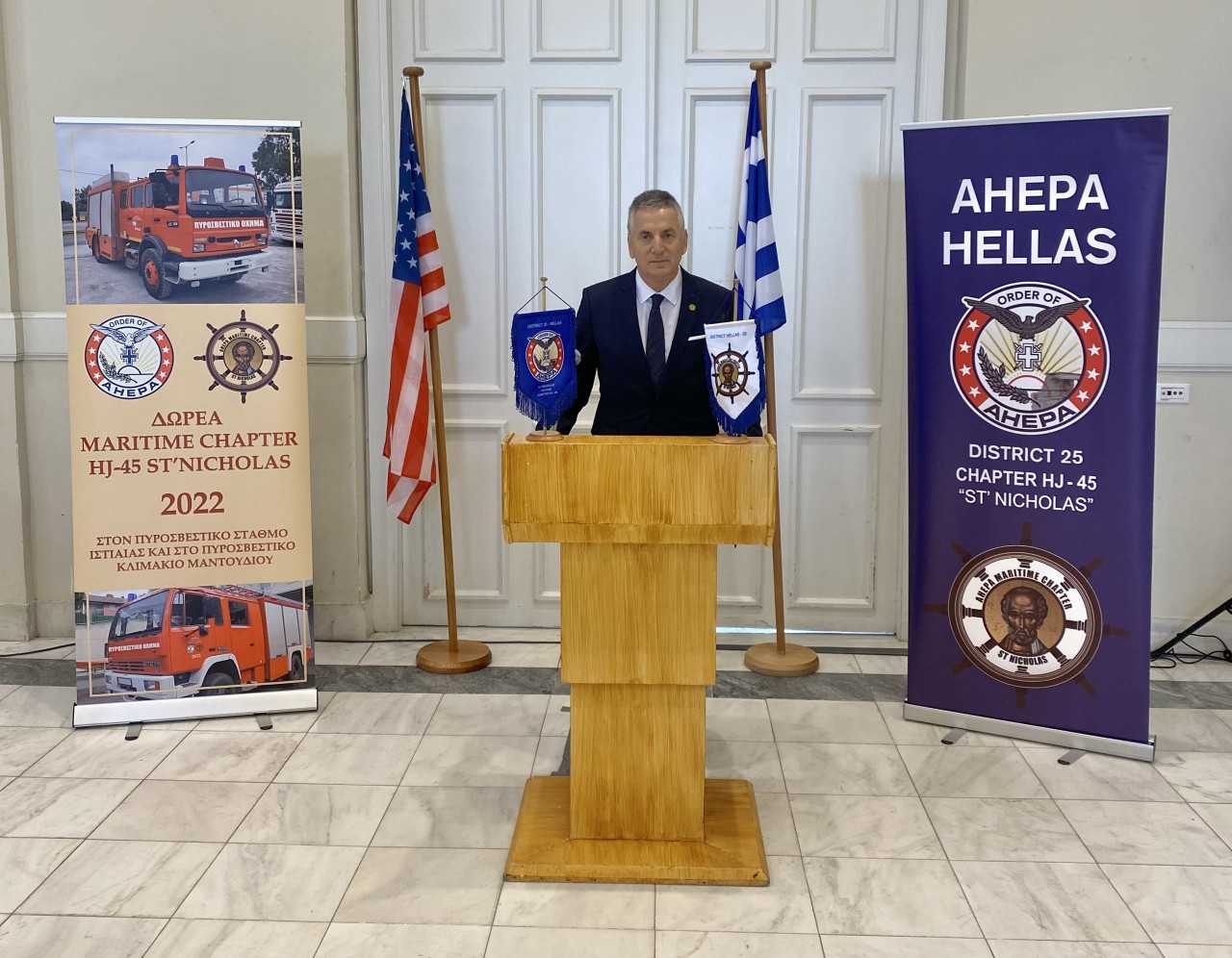 Ο πρόεδρος «AHEPA Maritime Chapter HJ-45 St Nicholas», Δημήτρης Ματθαίου, μεταξύ άλλων είπε: « Νιώθω ιδιαίτερα περήφανος που το Maritime Chapter HJ-45 St Nicholas ως μέλος της παγκόσμιας οικογένειας της AHEPA ενεργεί ως φορέας κοινωνικής προσφοράς, διαθέτοντας δύο πυροσβεστικά οχήματα και συγκεκριμένα στην πυροσβεστική υπηρεσία Ιστιαίας και στο πυροσβεστικό κλιμάκιο Μαντουδίου στη Βόρεια Εύβοια που επλήγησαν από τις καταστροφικές πυρκαγιές του περασμένου καλοκαιριού» και συνέχισε: