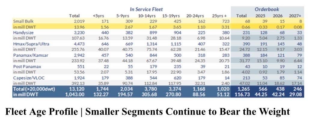 Κοιτώντας μπροστά, η Allied επισημαίνει ότι η συγκέντρωση της γήρανσης στις μικρότερες και μεσαίες κατηγορίες θα συνεχιστεί, την ώρα που το μείγμα του orderbook μετατοπίζεται σταδιακά προς μεγαλύτερα μεγέθη πλοίων. Η αυξημένη αναλογία παραγγελιών σε Panamax/Kamsarmax και Capesize/VLOC ενδέχεται να λειτουργήσει ως τροχοπέδη στην ανοδική φάση της ναυλαγοράς, ειδικά σε ένα περιβάλλον αυξημένης μακροοικονομικής αβεβαιότητας. Η επιβράδυνση των προοπτικών ζήτησης χάλυβα στην Κίνα ενισχύει τον κίνδυνο η νέα χωρητικότητα να αυξηθεί ταχύτερα από τα φορτία, θέτοντας νέες προκλήσεις για την ισορροπία της αγοράς ξηρού φορτίου τα επόμενα χρόνια.