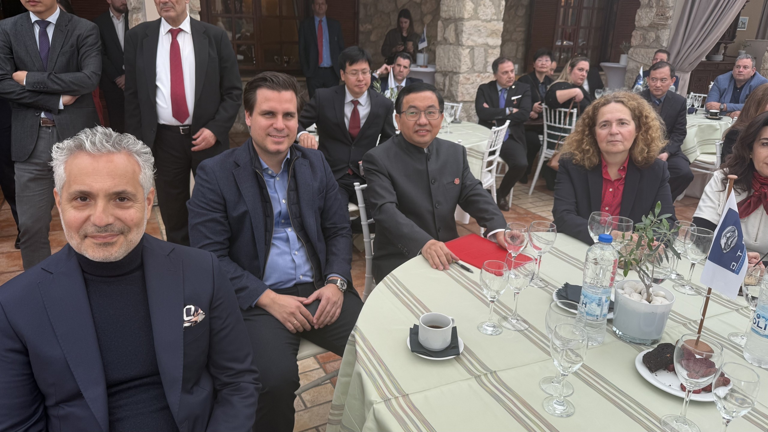 Ο Πρέσβης της Λαϊκής Δημοκρατίας της Κίνας Fang Qiu έδωσε σαφές γεωπολιτικό στίγμα. Αναφερόμενος στο 2025, μίλησε για «βαθιά αβεβαιότητα», τονίζοντας ότι η Κίνα επέλεξε τη γραμμή «open for talks, ready to fight to the end» στον εμπορικό πόλεμο δασμών, υπογραμμίζοντας ότι «οι παραχωρήσεις δεν φέρνουν δικαιοσύνη».