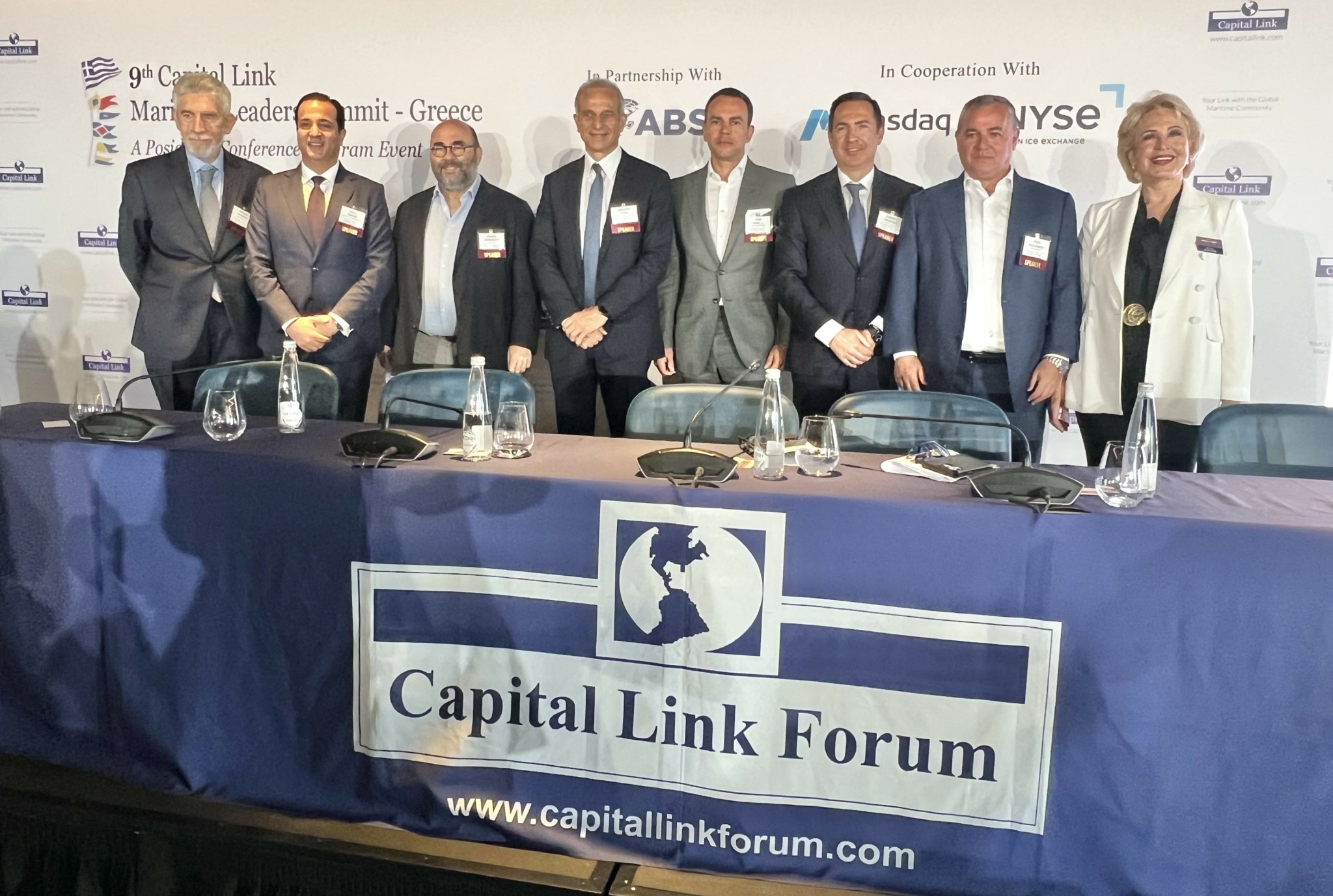 Στην διάρκεια του 9ου capital link Maritime Leaders Summit μίλησαν ο Αριστείδης Πίττας (Euroseas-Eurodry), ο Γιώργος Γιουρούκος (Global Ship Lease) , ο Γιάννης Δράγνης (Goldenport group), ο Σταμάτης Τσαντάνης (Seanergy Maritime- United Maritime) και ο Πόλυς Β. Χατζηιωάννου (Safe Bulkers).