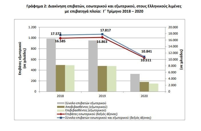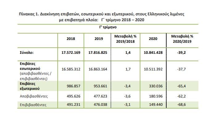 - Η συνολική διακίνηση επιβατών στους Ελληνικούς λιμένες το γ΄ τρίμηνο 2020 σε σύγκριση με το γ΄
