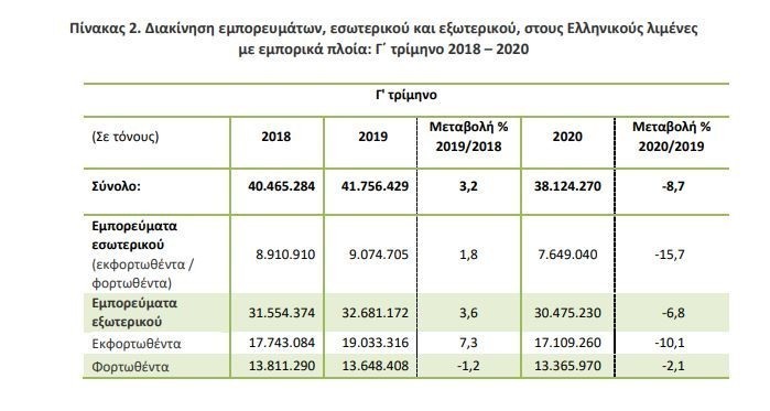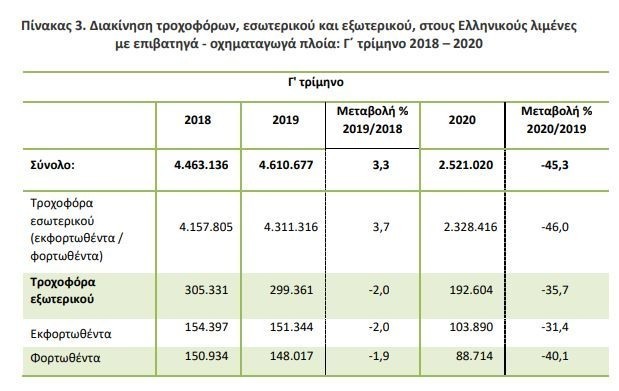και κινητών μονάδων στους Ελληνικούς λιμένες του γ΄ τριμήνου 2020. Ειδικότερα: