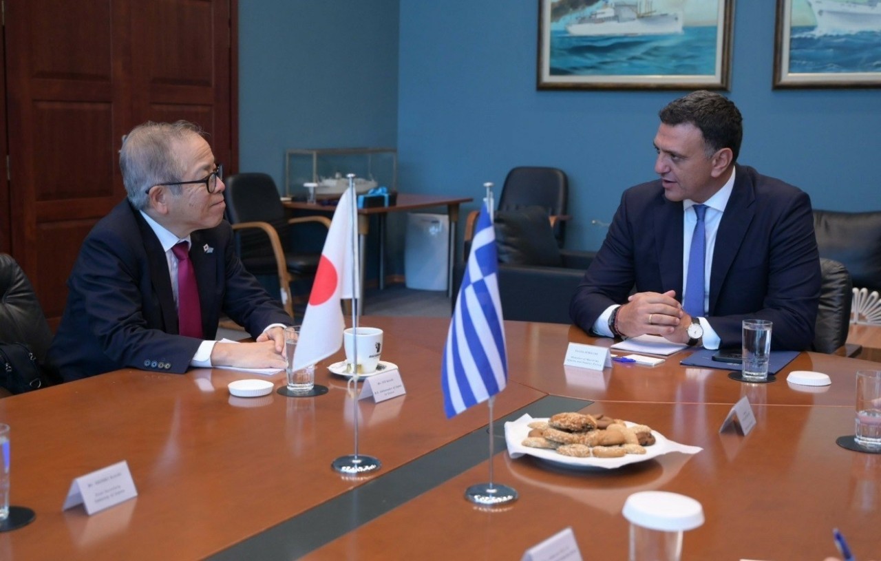 Στο υπουργείο Ναυτιλίας και Νησιωτικής Πολιτικής πραγματοποιήθηκε σήμερα η συνάντηση του Υπουργού Βασίλη Κικίλια με τον Πρέσβη της Ιαπωνίας στην Ελλάδα, Ito Koichi. Η συζήτηση επικεντρώθηκε στους ιστορικούς δεσμούς των δύο χωρών στον τομέα της ναυτιλίας, στις προοπτικές ενίσχυσης της διμερούς συνεργασίας αλλά και στις νέες πολιτικές που σχεδιάζει το Υπουργείο για την «πράσινη» μετάβαση και την εκπαίδευση των νέων ναυτικών.
