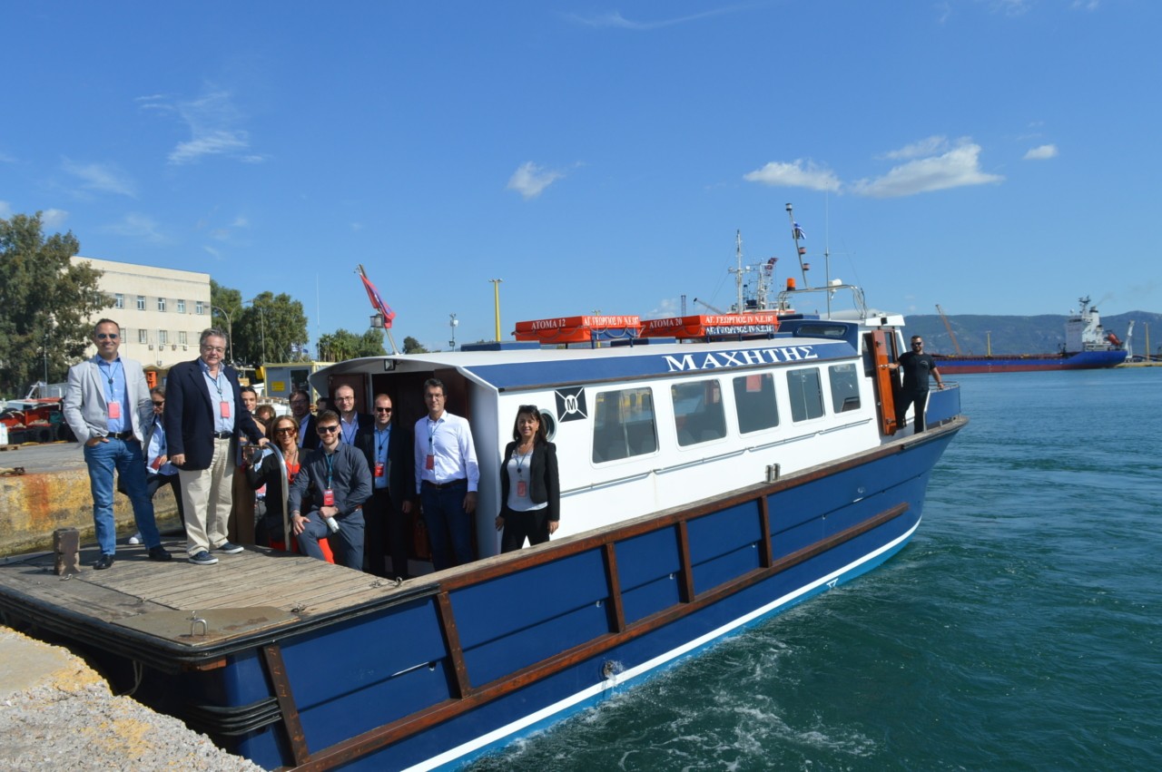 Ακολούθησε περιήγηση δια θαλάσσης με πλωτό μέσο στην θαλάσσια ζώνη του Ο.Λ.Ε. ΑΕ, κατά την οποία οι εκπρόσωποι των γερμανικών εταιριών είχαν την ευκαιρία να αποκτήσουν μία ολοκληρωμένη εικόνα της θέσης των λιμενικών εγκαταστάσεων, καθώς και του χαρακτήρα της ευρύτερης παράκτιας περιοχής του κόλπου της Ελευσίνας όπου δραστηριοποιούνται τα μεγαλύτερα Ναυπηγεία της χώρας, ναυπηγικές μονάδες και σημαντικές βιομηχανίες.