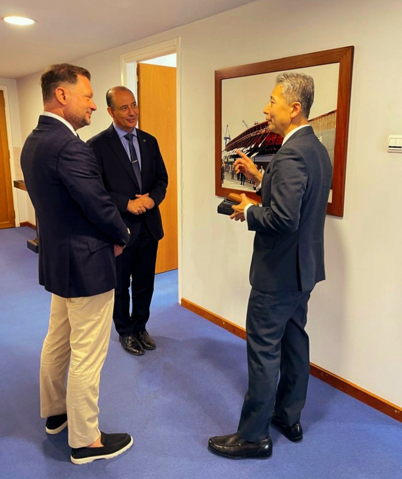 Κατά τη διάρκεια της επίσκεψής του, ο Κορεάτης Πρέσβης ξεναγήθηκε στις εγκαταστάσεις των ναυπηγείων, ενημερώθηκε για τα μεγάλα έργα που βρίσκονται σε εξέλιξη και είχε κατ’ ιδίαν συνάντηση με τον Πρόεδρο και Διευθύνων Σύμβουλο του Ομίλου Onex Shipyards & Τechnologies και Πρόεδρο της Ένωσης Ελληνικών Ναυπηγείων, κ. Πάνο Τ. Ξενοκώστα.