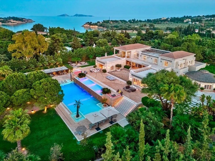 Φορτωμένος εδώ και χρόνια με χρέη, ο Γιάννης Φράγκος ζητάει 10.000 ευρώ για κάθε ένα τετραγωνικό μέτρο από τα 3.200 της επιβλητικής κατοικίας με τα 16 δωμάτια, τα 12 υπνοδωμάτια και τα 12 μπάνια. Η κατοικία βρίσκεται μέσα σε ένα οικόπεδο 26 στρεμμάτων, διαθέτει δύο πισίνες και εντυπωσιακό κήπο που καταλήγει σε μικρή ιδιωτική παραλία, η οποία διαθέτει και προβλήτα για να δένουν μεγάλα σκάφη.