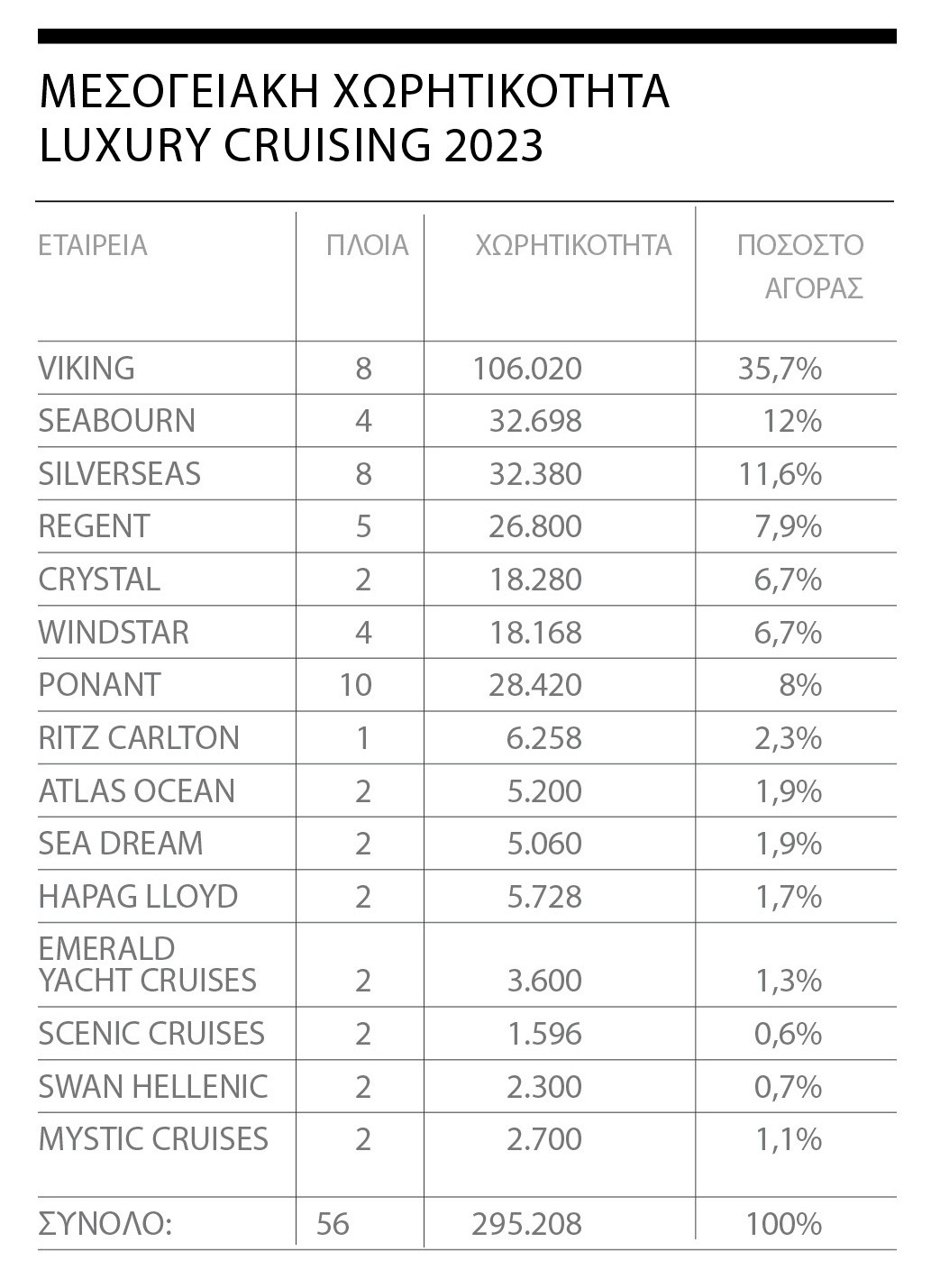 Συνολικά έχουμε 56 πλοία που θα εκτελούν πολυτελείς κρουαζιέρες κατά τη θερινή σεζόν σε διάφορους προορισμούς.