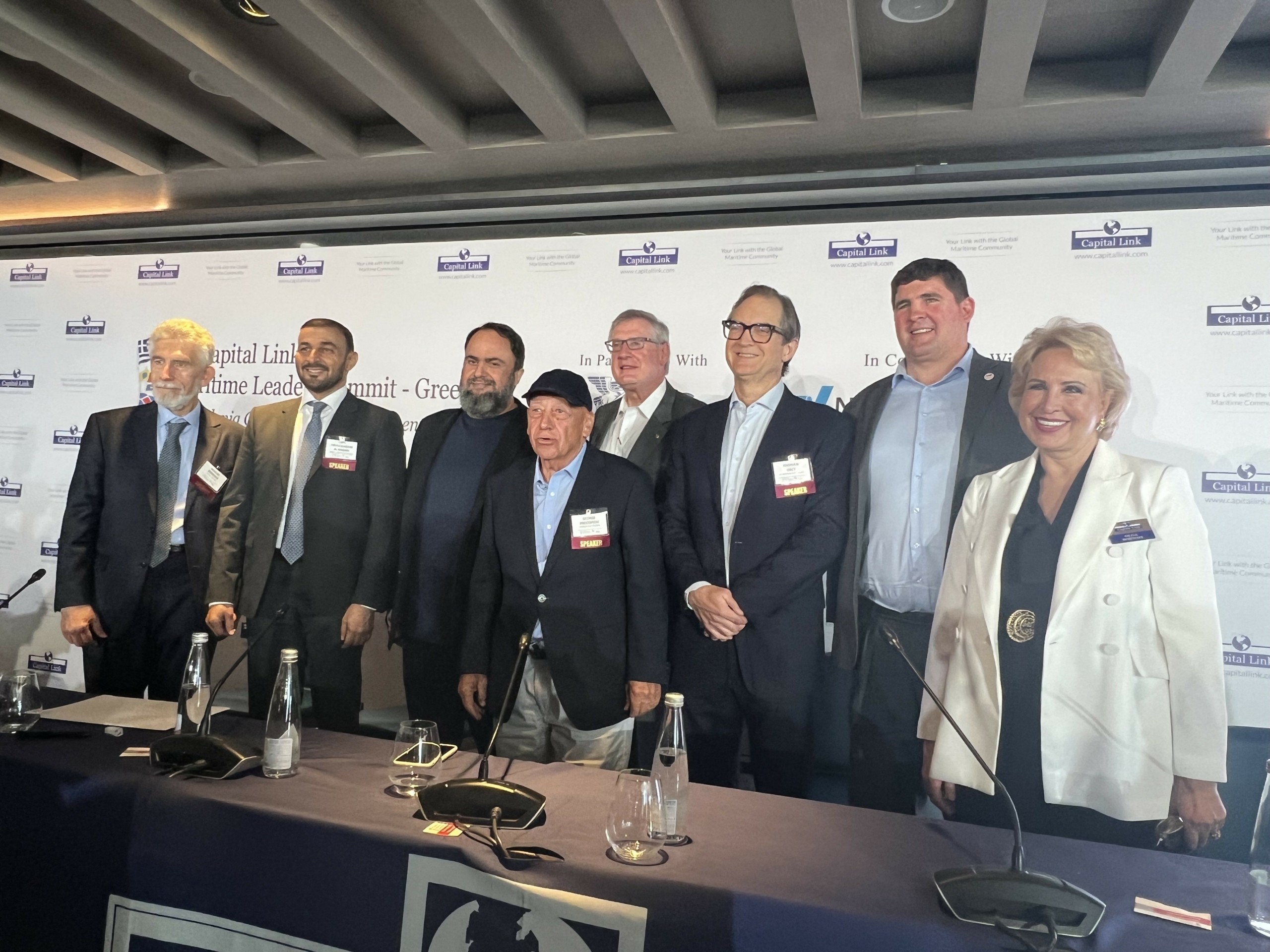 Στο πάνελ με τους δύο Έλληνες πλοιοκτήτες συμμετείχαν ο πρόεδρος και CEO του ABS, Chris Wiernicki ως συντονιστής, ο Αντι Ντέισι, Managing Director & Group Head στη Global Transportation Group – J.P. Morgan Asset Management και o αντιπρόεδρος της TotalEnergies Ζερόμ Κουζάν.