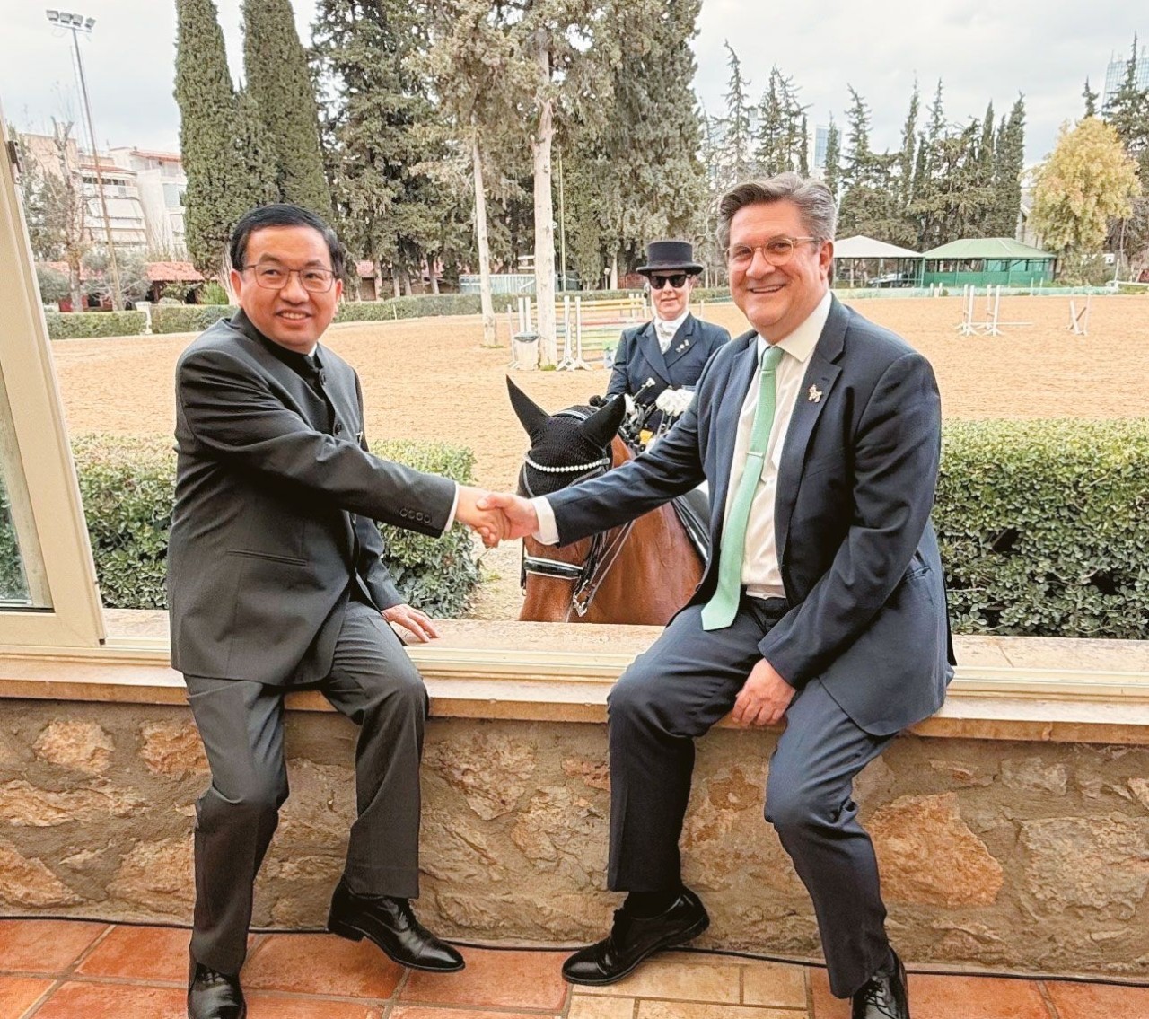 *Στην κεντρική φωτογραφία ο Γιώργος Ξηραδάκης με τον Κινέζο πρέσβη Φανγκ Κιου στον εορτασμό της χρονιάς του Αλόγου