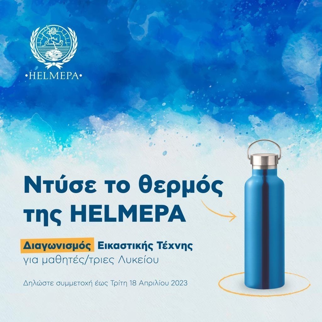 Η Ελληνική Ένωση Προστασίας Θαλάσσιου Περιβάλλοντος – HELMEPA, μία από τις πιο ιστορικές περιβαλλοντικές οργανώσεις στην Ελλάδα για καθαρές και υγιείς θάλασσες, καλεί μαθητές/τριες Λυκείου (Α’ Β’ Γ’) να εμπνευστούν και να δημιουργήσουν το δικό τους έργο για την προστασία και υγεία των θαλασσών (ζωγραφική, φωτογραφία, κολάζ, κάποιο σύνθημα) στο πλαίσιο του Πανελλήνιου Διαγωνισμού Εικαστικής Τέχνης με θέμα: «Η θάλασσα είναι ζωή!».