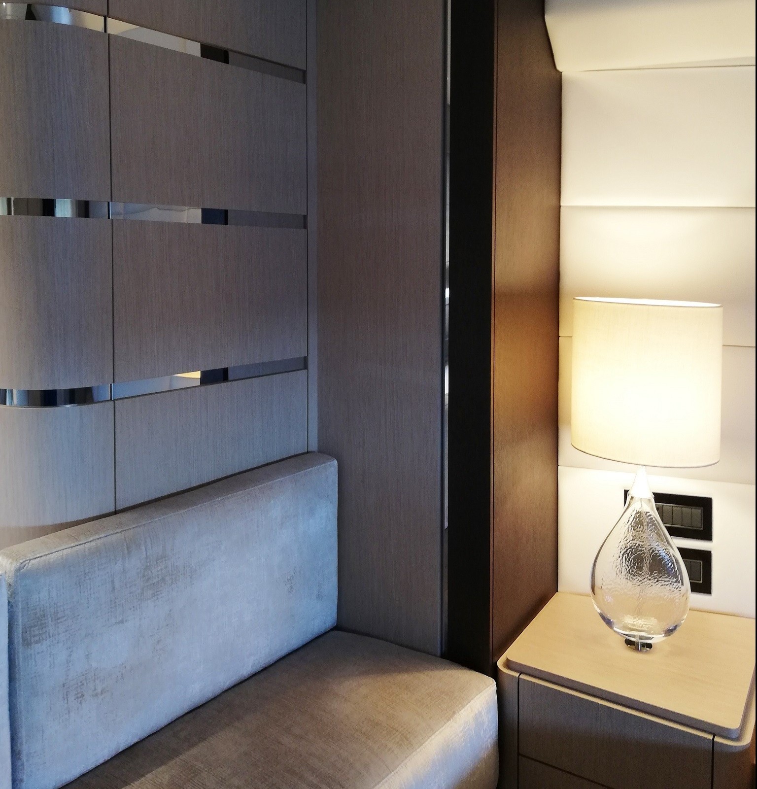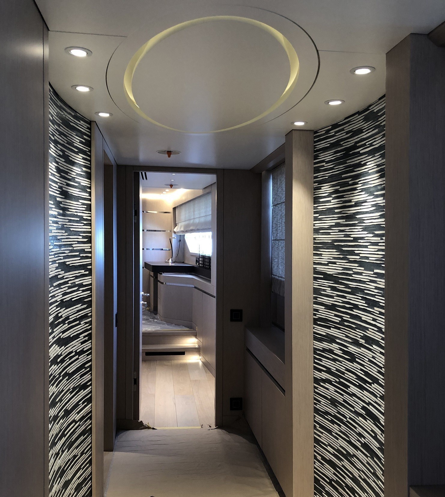 Όλο το εσωτερικό σχεδιάστηκε εξ αρχής, προσθέτοντας νέες λειτουργίες και νέο ύφος στο σκάφος. Οι χώροι απέκτησαν σύγχρονη, ανάλαφρη και ταυτόχρονα, εντυπωσιακή και πολυτελή ατμόσφαιρα, ενώ στα εξωτερικά καταστρώματα διαμορφώθηκαν χώροι φαγητού και χαλάρωσης με πιο σημαντικό ένα ιδιαίτερο layout στο sundeck που δένει το jacuzzi με τα καθιστικά και το bar με έναν μοναδικό τρόπο, δημιουργώντας χώρο ιδανικό για το lifestyle της Μεσογείου.