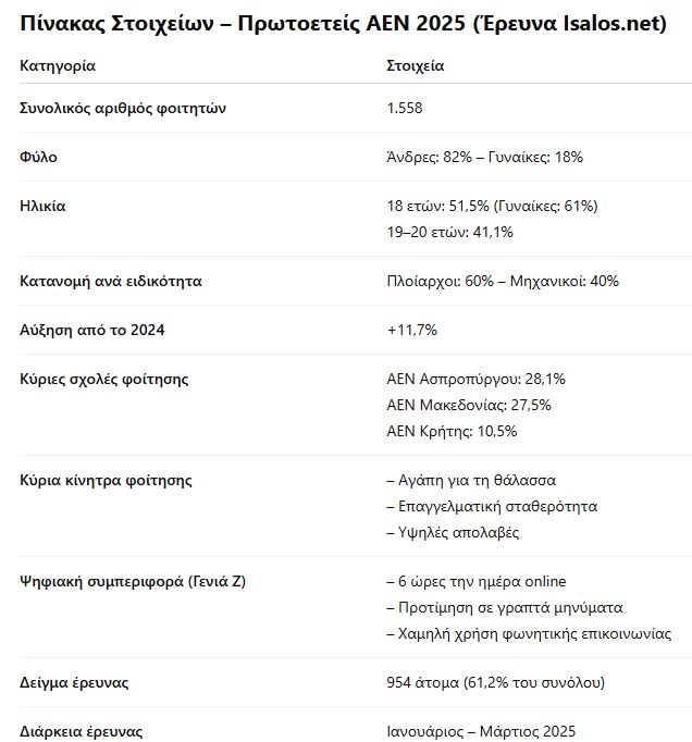Σύμφωνα με την ετήσια έρευνα της Isalos.net για το 2025, οι νέοι και οι νέες που κάνουν τα πρώτα τους βήματα προς το ναυτικό επάγγελμα, όχι μόνο παραμένουν πιστοί στην επιλογή τους, αλλά και σκιαγραφούν ένα ενδιαφέρον κοινωνιολογικό προφίλ που προκαλεί συζήτηση εντός της ναυτιλιακής κοινότητας.