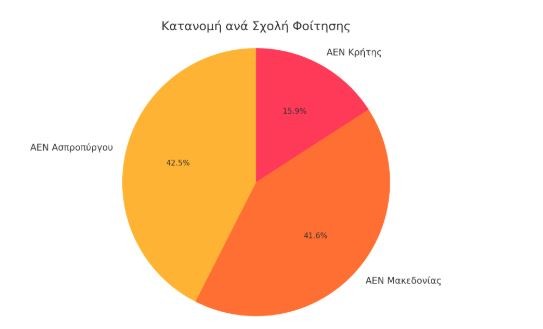 Η ΑΕΝ Ασπροπύργου (28,1%) και η ΑΕΝ Μακεδονίας (27,5%) συνεχίζουν να συγκεντρώνουν το μεγαλύτερο ποσοστό πρωτοετών. Την τριάδα συμπληρώνει η ΑΕΝ Κρήτης με 10,5%. Η προτίμηση στις σχολές αυτές δείχνει την ισχυρή ελκυστικότητά τους και το υψηλό επίπεδο υποδομών και εκπαιδευτικού προσωπικού.