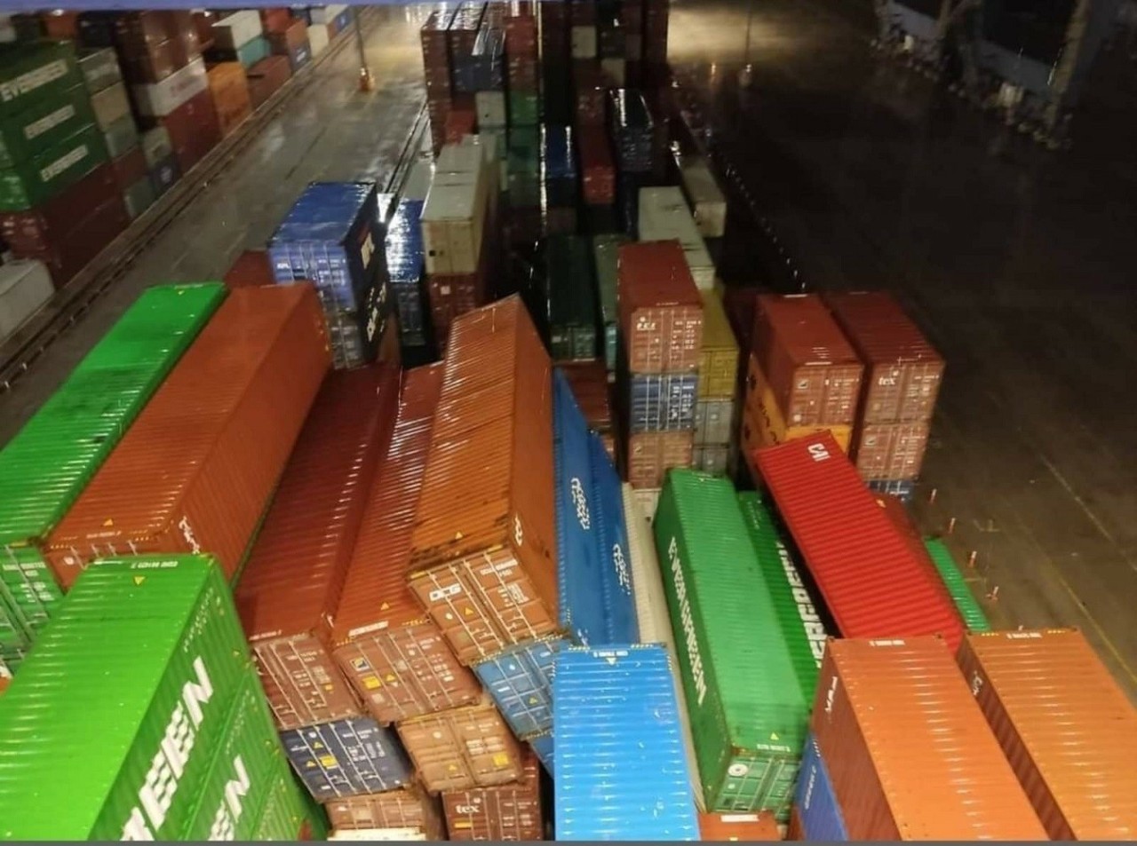 Κατά τη βραδινή βάρδια, σήμερα τα ξημερώματα, κόπηκαν κάβοι από το πλοίο μεταφοράς εμπορευματοκιβωτίων. Αλλού σημειώθηκαν πτώσεις εμπορευματοκιβωτίων και κολώνας φωτισμού, ενώ και γύρω από το λιμάνι τα πλημμυρικά φαινόμενα ήταν πολύ έντονα.