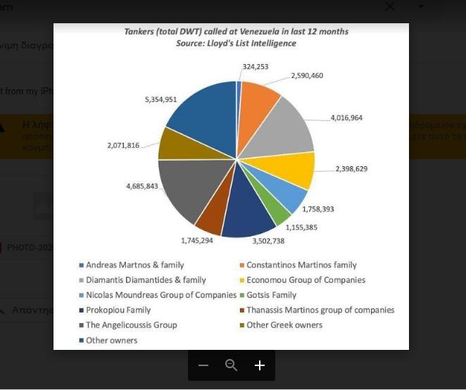 Σήμερα ήρθε να προστεθεί στη δημοσιοποίηση με στοιχεία της Lloyd’s List Intelligence στην οποία καταγράφονται τα δεξαμενόπλοια, με βάση όχι τον αριθμό των πλοίων αλλά την χωρητικότητά τους, το λεγόμενο τονάζ τους, που προσέγγισαν τη Βενεζουέλα για να μεταφέρουν πετρέλαιο, τους τελευταίους περίπου 12 μήνες.