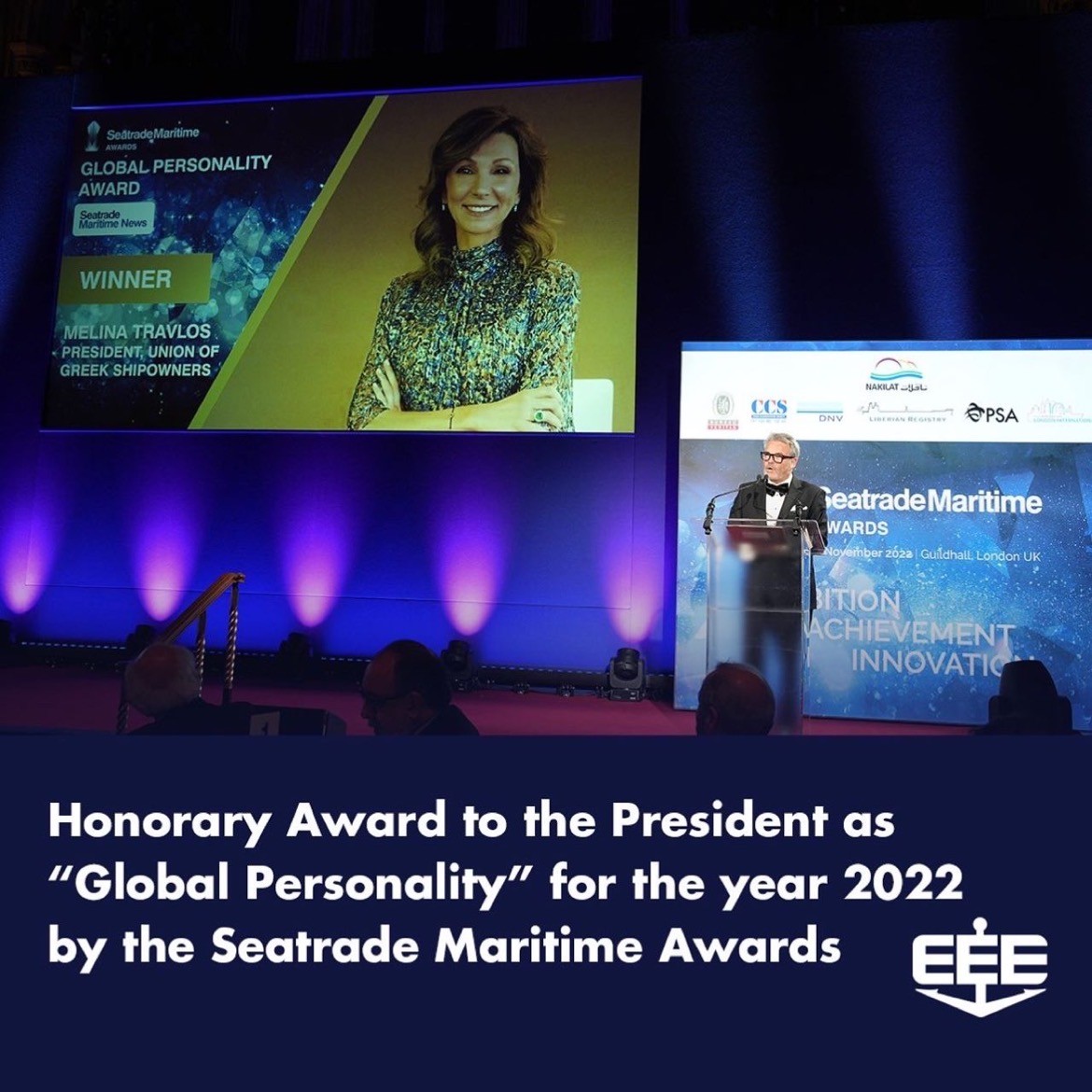 Με το βραβείο της Παγκόσμιας Προσωπικότητας της Ναυτιλίας Global Personality Award, βραβεύτηκε η πρόεδρος της Ένωσης Ελλήνων Εφοπλιστών, Μελίνα Τραυλού στο πλαίσιο της 33ης απονομής των διεθνών Seatrade Maritime Awards σε εκδήλωση που πραγματοποιήθηκε στο Γκάιντχολ του Λονδίνου την περασμένη Τρίτη.