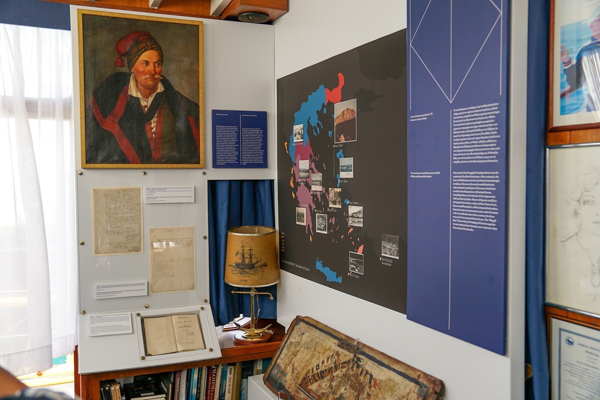 Η έκθεση φιλοξενείται στο εκπαιδευτικό ιστιοφόρο «Μάνια» του Ναυτικού Λυκείου “Τσάκος Ελληνικά Εκπαιδευτήρια Ναυτικών Σπουδών» (TEENS). Κειμήλια όπως ο Σταυρός του Μιαούλη, επαναστατικές σημαίες, ναυτικά όργανα και όπλα, ημερολόγια και σηματολόγια πλοίων του Αγώνα, ταξιδεύουν στο Αιγαίο από τις 26 Ιουνίου, καταλήγοντας στον Πειραιά στις 31 Ιουλίου 2022.