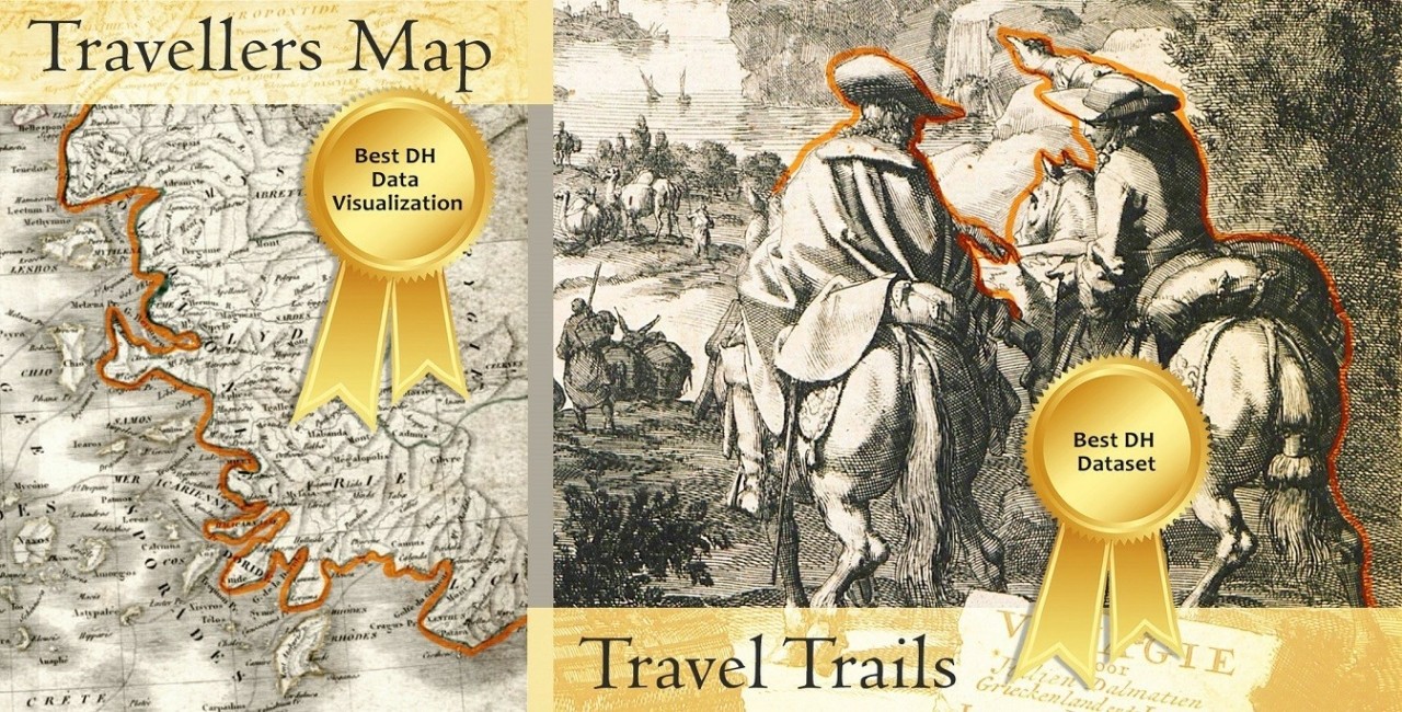 Συγκεκριμένα, ο διαδραστικός χάρτης Travellers Map (travellersmap.gr) αναδείχθηκε η «Καλύτερη Εφαρμογή για την Ανάδειξη Δεδομένων (Best DH Data Visualization)», ενώ το Travel Trails: Αποστολές και Εξερευνήσεις στην ανατολική Μεσόγειο, 1500-1830 (traveltrails.gr), κατέκτησε την πρώτη θέση στην κατηγορία «Καλύτερο Έργο για την Ανάδειξη Πηγών (Best DH Dataset)».