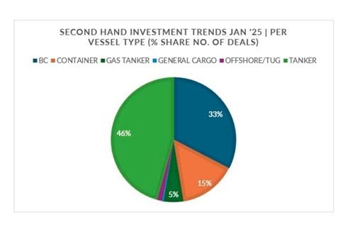 Οι πωλήσεις bulk carriers και δεξαμενόπλοιων παρουσίασαν στενή συσχέτιση με τις τάσεις των ναύλων: η αύξηση του δείκτη BDI στήριξε τις πωλήσεις bulk carriers, ενώ η άνοδος των ναύλων-TCE των VLCC στη διαδρομή Μέση Ανατολή–Κίνα οδήγησε σε περισσότερη δραστηριότητα στα μεγάλα δεξαμενόπλοια.