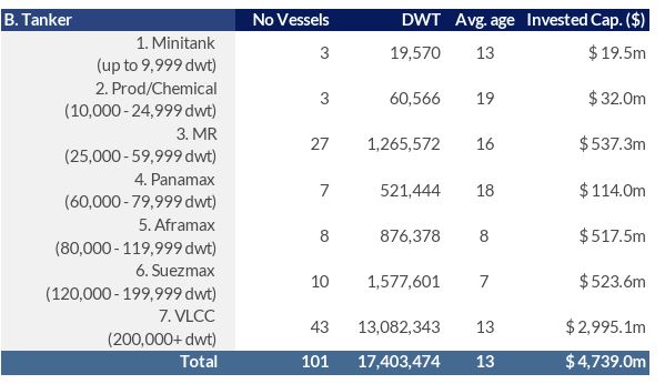 Η κατανομή κεφαλαίων εστίασε κυρίως στα δεξαμενόπλοια, με 101 συναλλαγές και εκτιμώμενη αξία 4,7 δισ. δολαρίων. Σημαντική ήταν η ζήτηση στα VLCC, με 43 deals συνολικής αξίας 2,9 δισ. δολαρίων. Στα μεσαίου μεγέθους crude segments, τα Suezmax κατέγραψαν 10 συναλλαγές αξίας 523,6 εκατ. δολαρίων, ενώ τα LR2/Aframax είχαν 8 deals συνολικής αξίας 517,5 εκατ. δολαρίων.