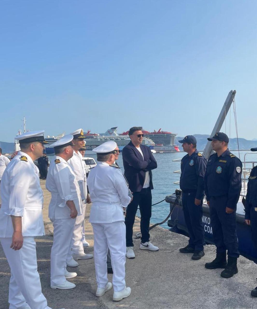 Τον Υπουργό υποδέχθηκε ο Υφυπουργός Ναυτιλίας και Νησιωτικής Πολιτικής, Στέφανος Γκίκας. Στη συνέχεια, συνοδευόμενος από τον Αρχηγό του Λ.Σ – ΕΛ.ΑΚΤ. Αντιναύαρχο Λ.Σ. Τρύφων Κοντιζά, τον Διοικητή της 3ης Περιφερειακής Διοίκησης Λ.Σ. – ΕΛ.ΑΚΤ., Πλοίαρχο Λ.Σ. Κωνσταντίνο Κορίζη και τον Λιμενάρχη του Κεντρικού Λιμεναρχείου Κέρκυρας, Πλοίαρχο Λ.Σ. Αναστάσιο Σχοινά, επισκέφθηκε το Λιμεναρχείο όπου ενημερώθηκε από τον Περιφερειάρχη και τον Λιμενάρχη για θέματα που αφορούν στη δραστηριότητα της Περιφέρειας και του Λιμεναρχείου και συζήτησε με τα στελέχη της Λιμενικής Αρχής. Έπειτα, ο Υπουργός μετέβη για επιθεώρηση στα περιπολικά σκάφη του Λ.Σ-ΕΛ.ΑΚΤ. που ελλιμενίζονται στο λιμάνι της Κέρκυρας και συνεχάρη τα πληρώματά τους για την διαρκή ετοιμότητά τους, τον επαγγελματισμό τους, την προσήλωσή τους στο καθήκον, την αυταπάρνηση και τον ζήλο που επιδεικνύουν καθημερινά με γνώμονα την προστασία της ανθρώπινης ζωής στη θάλασσα και την προάσπιση των θαλασσίων συνόρων της πατρίδας.