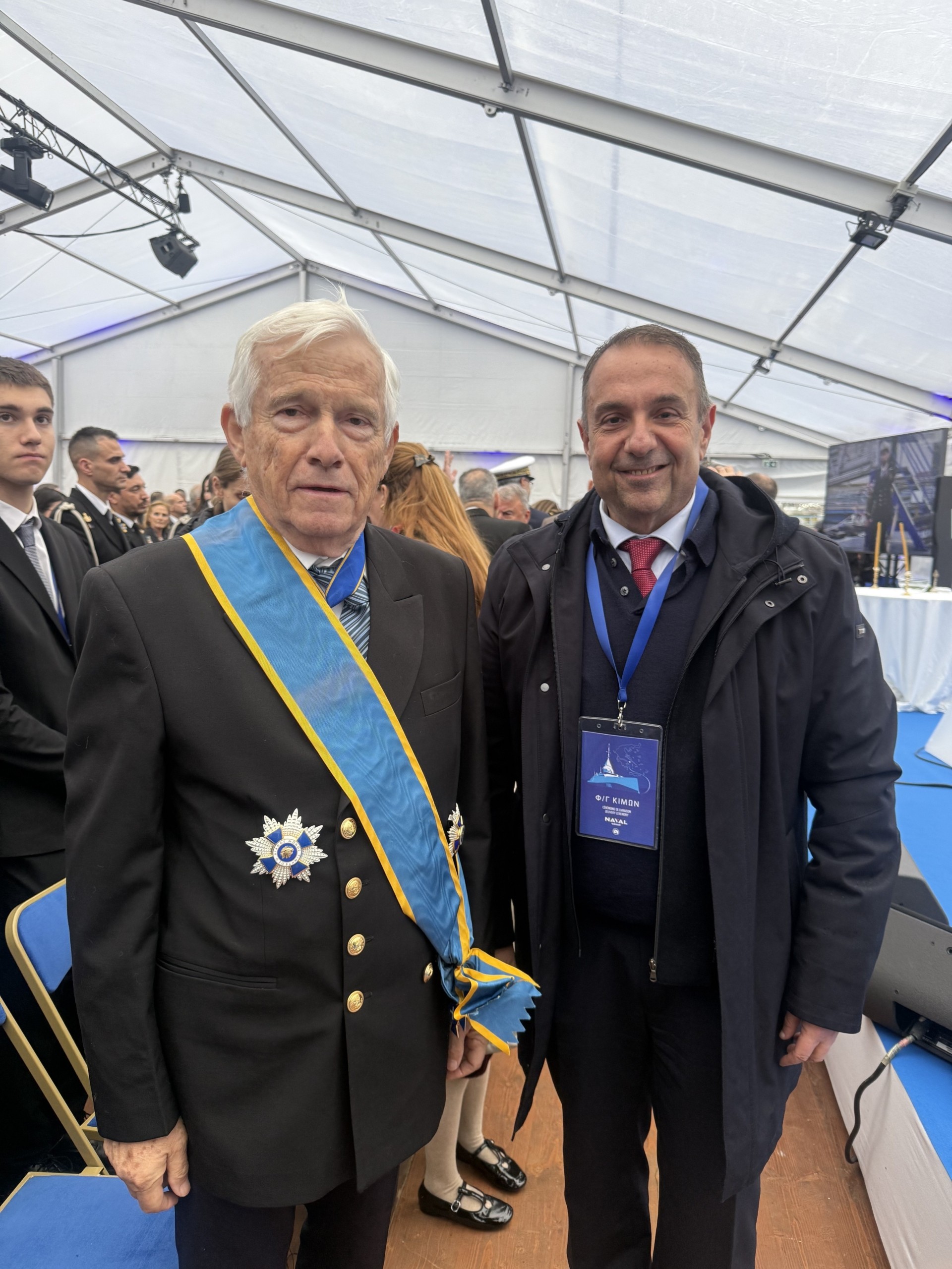 Η τελετή ύψωσης της ελληνικής σημαίας πραγματοποιήθηκε στην προβλήτα του ναυπηγείου της Naval Group, εκεί όπου η «ΚΙΜΩΝ» είχε ολοκληρώσει έναν απαιτητικό κύκλο ναυπήγησης και δοκιμών. Με την ανύψωση της ελληνικής σημαίας στην πρύμνη και του επισείοντα, του διεθνούς διακριτικού που δηλώνει ότι το πλοίο διαθέτει κυβερνήτη, η φρεγάτα αποδόθηκε στο Ελληνικό Πολεμικό Ναυτικό.