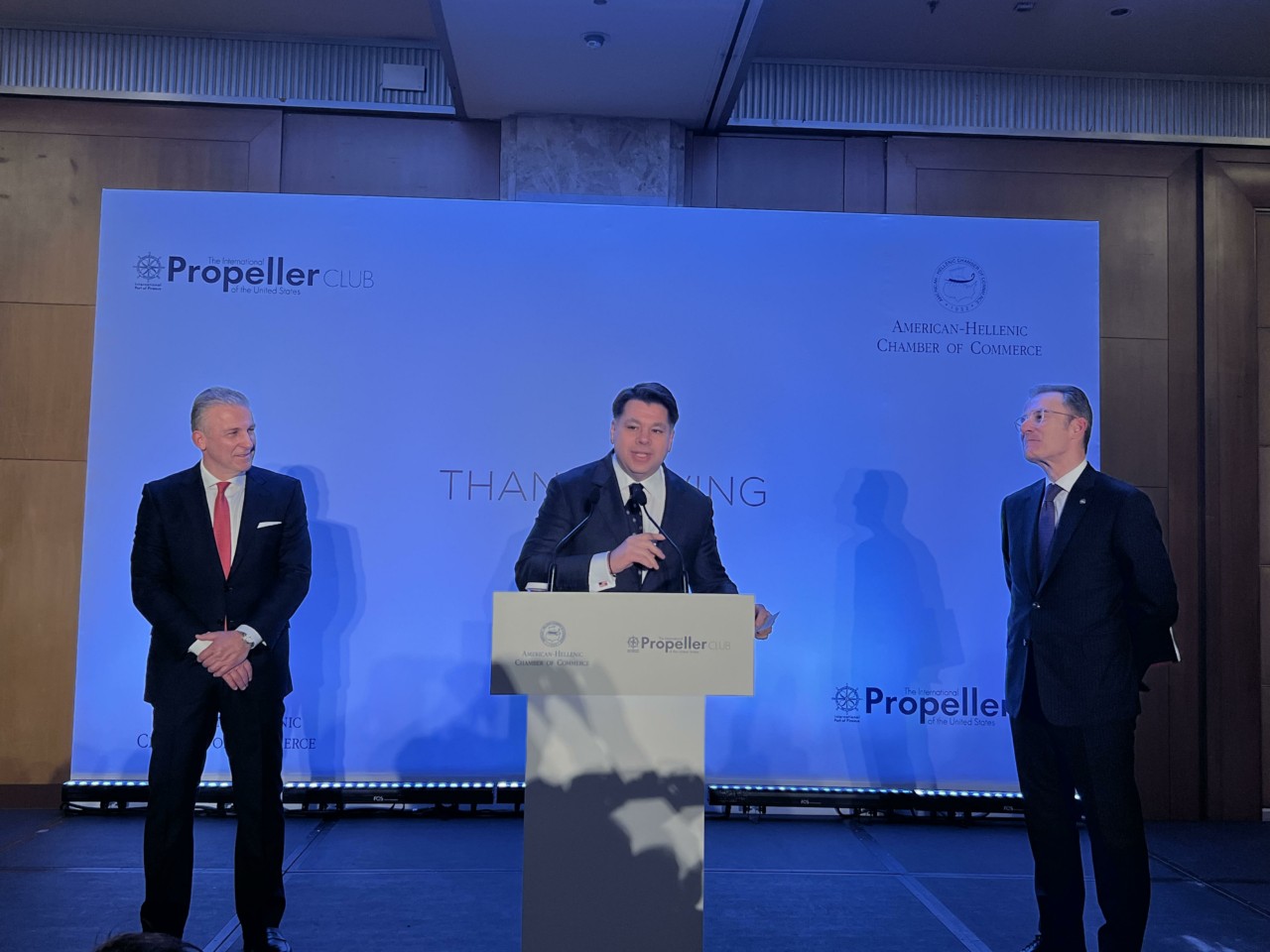 «Απόψε γιορτάζουμε μια όμορφη, μακρόχρονη παράδοση. Το ετήσιο δείπνο μας για την Ημέρα των Ευχαριστιών, το οποίο διοργανώνουμε μαζί με το Ελληνοαμερικανικό Εμπορικό Επιμελητήριο. Το Επιμελητήριο είναι ένας πολύτιμος εταίρος στις συνεχείς προσπάθειές μας να ενισχύσουμε τις ελληνοαμερικανικές σχέσεις και τη συνεργασία για να μεγιστοποιήσουμε τις δυνατότητές τους. Και οι δύο Οργανισμοί μας πιστεύουν ακράδαντα και υποστηρίζουν τις τεράστιες ευκαιρίες συνεργασίας μεταξύ των δύο εθνών» και συνέχισε:
