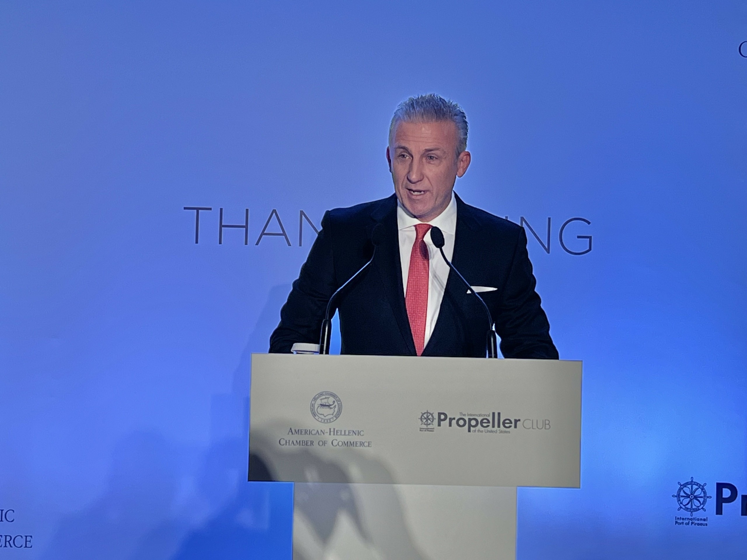 «Απόψε γιορτάζουμε μια όμορφη, μακρόχρονη παράδοση. Το ετήσιο δείπνο μας για την Ημέρα των Ευχαριστιών, το οποίο διοργανώνουμε μαζί με το Ελληνοαμερικανικό Εμπορικό Επιμελητήριο. Το Επιμελητήριο είναι ένας πολύτιμος εταίρος στις συνεχείς προσπάθειές μας να ενισχύσουμε τις ελληνοαμερικανικές σχέσεις και τη συνεργασία για να μεγιστοποιήσουμε τις δυνατότητές τους. Και οι δύο Οργανισμοί μας πιστεύουν ακράδαντα και υποστηρίζουν τις τεράστιες ευκαιρίες συνεργασίας μεταξύ των δύο εθνών» και συνέχισε: