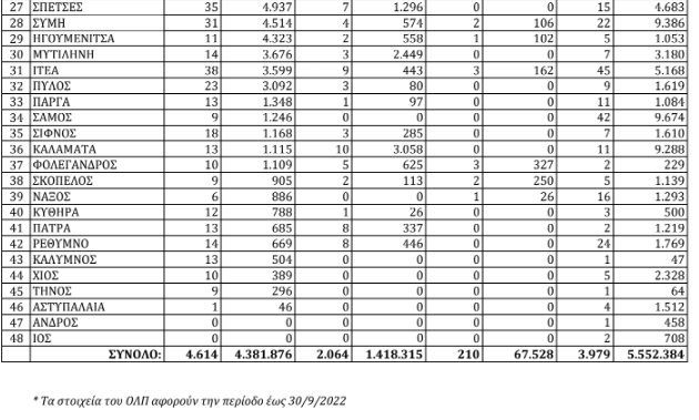 Είναι αξιοσημείωτο ότι σε σχέση με το 2021, παρατηρείται αύξηση στις αφίξεις σε όλους τους προορισμούς και ιδιαίτερα στο Λαύριο κατά 291%, στη Θεσσαλονίκη και στη Σαντορίνη κατά 259%, στη Μύκονο κατά 141%, στο Βόλο κατά 114%, στην Κέρκυρα 96%, στη Ρόδο 95% και στο Ηράκλειο κατά 92%.