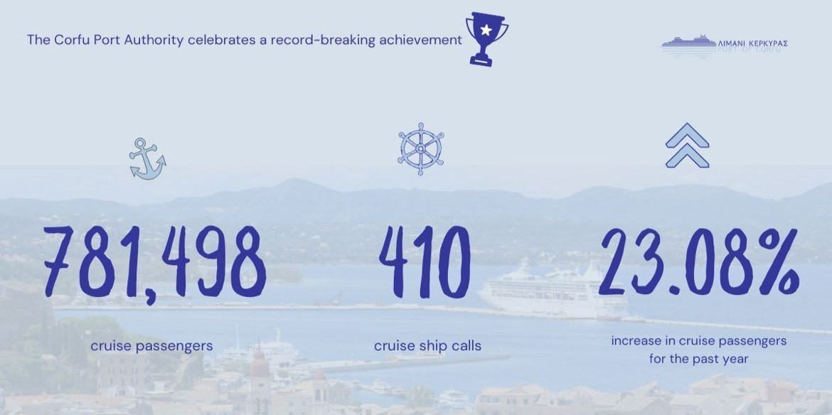 Τη φετινή σεζόν η Λιμενική Αρχή ΚΕΡΚΥΡΑΣ Α.Ε. – ΟΛΚΕ Α.Ε. έχει ήδη ξεπεράσει το ιστορικό ρεκόρ των 768.198 επιβατών του 2019, με τις κλήσεις κατάπλου κρουαζιερόπλοιων του Νοεμβρίου και του Δεκεμβρίου να μην έχουν ακόμη συνυπολογιστεί στον τελικό ετήσιο απολογισμό!
